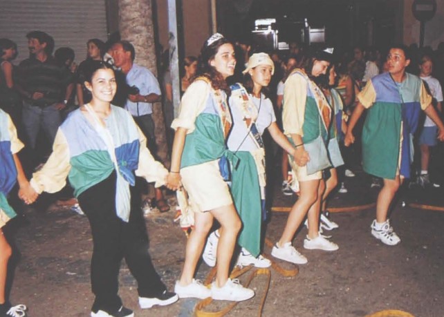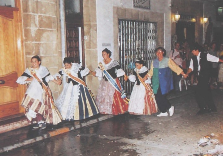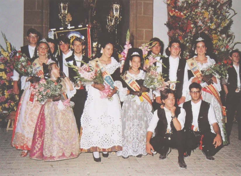 Rosana Sapena Cardona and Miguel Angel Bastida Cruañes were elected as presidents of quintà 1998 “La Bullanguera” with Mª Teresa Gilabert Bas selected as their Regina de la Foguera and Natalia Peiró Espasa as Regina del Foc. And now they not only had the pleasure representing their companions but also the people of Xabia in other festivals of the town and the rest of the region for the next twelve months.