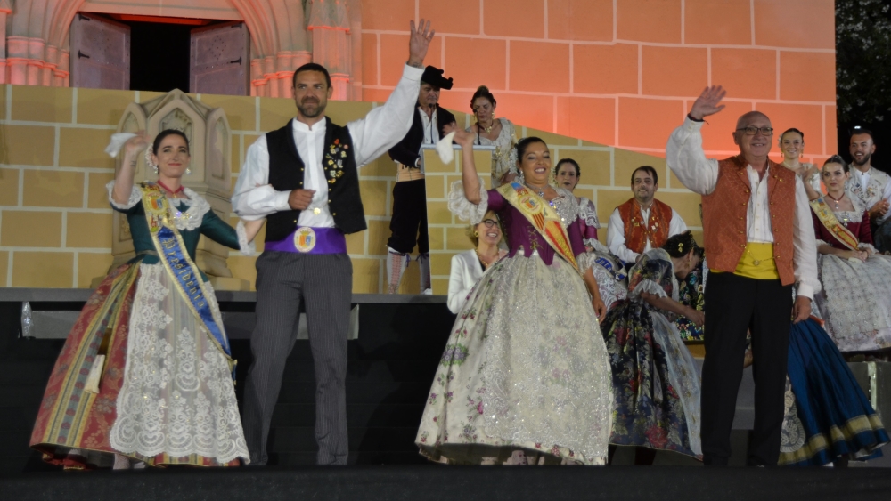 Quintà 2002 “On Anem l’Armem” – the name roughly translates as “Where we are going, we build it” – was led by Vicente José Ortolá and Melissa Martínez whilst Olaya Lara was selected as the Regina de la Foguera. As for the junior court, only five youngsters made up the Youth Commission whilst Irene Bolufer was chosen as Reginal Infantil.