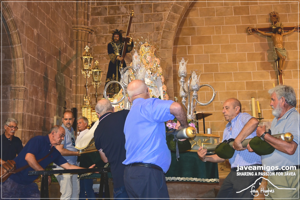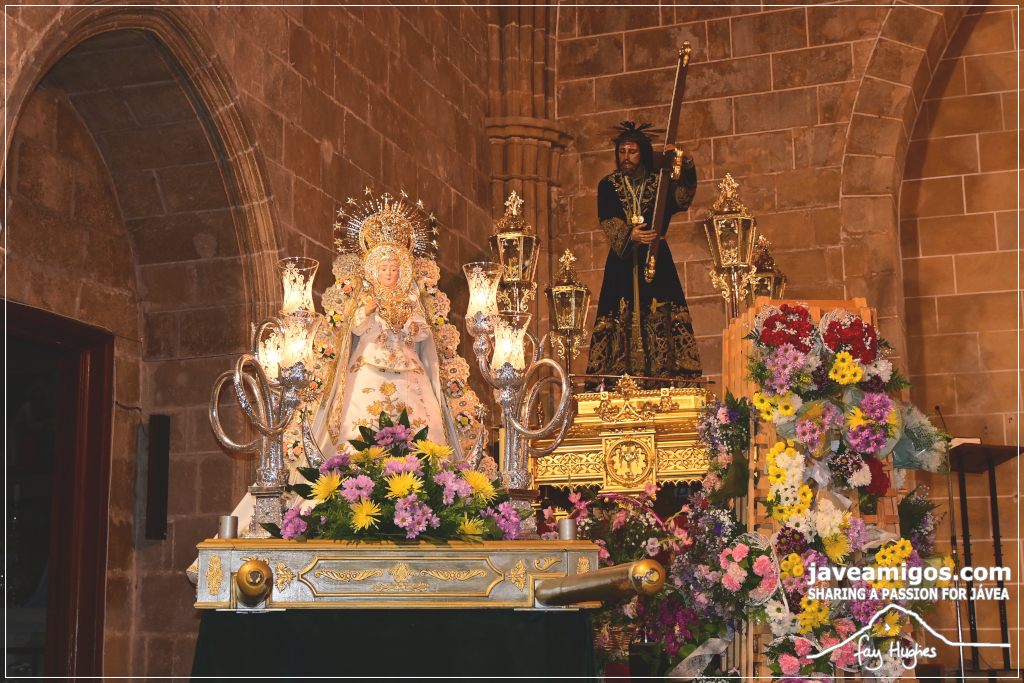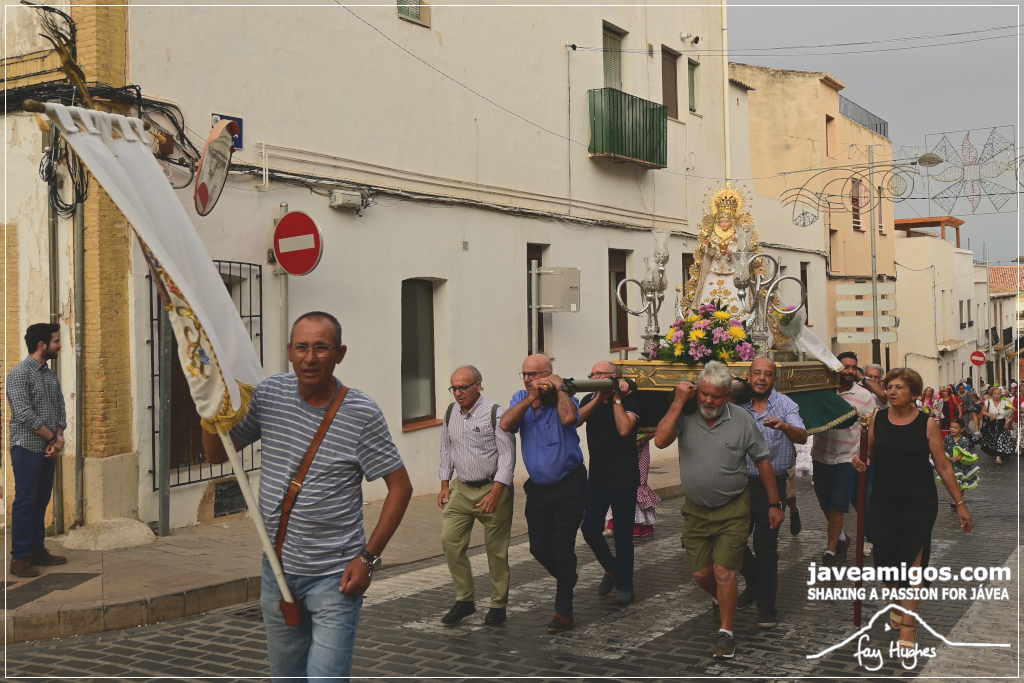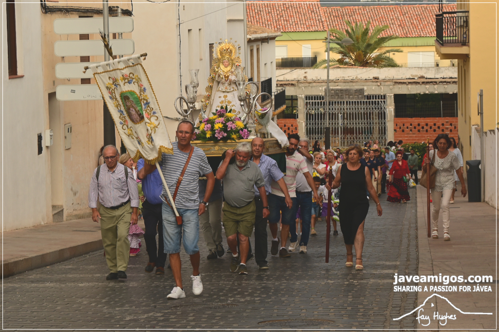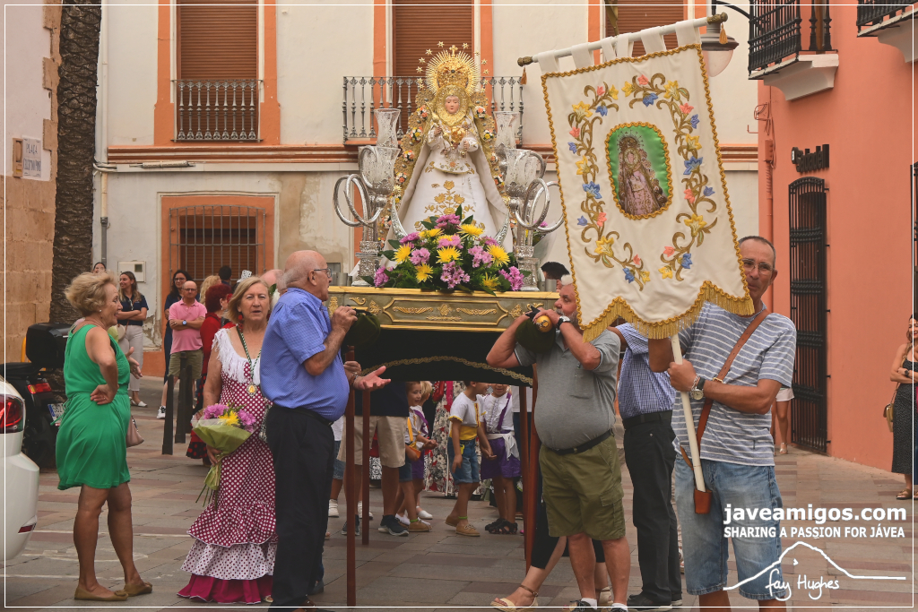 Last Wednesday 26th June was the flower offering to the image of the Virgen del Rocio, which was carried in procession by the members of the Casa de Andalusia from their headquarters in Thiviers to the parish church of San Bartolomé in the heart of the historic centre, accompanied by representatives from Fogueres Xàbia, Moros i Cristians and Mare de Déu de Loreto.