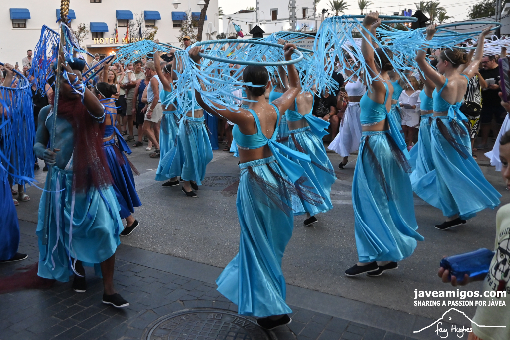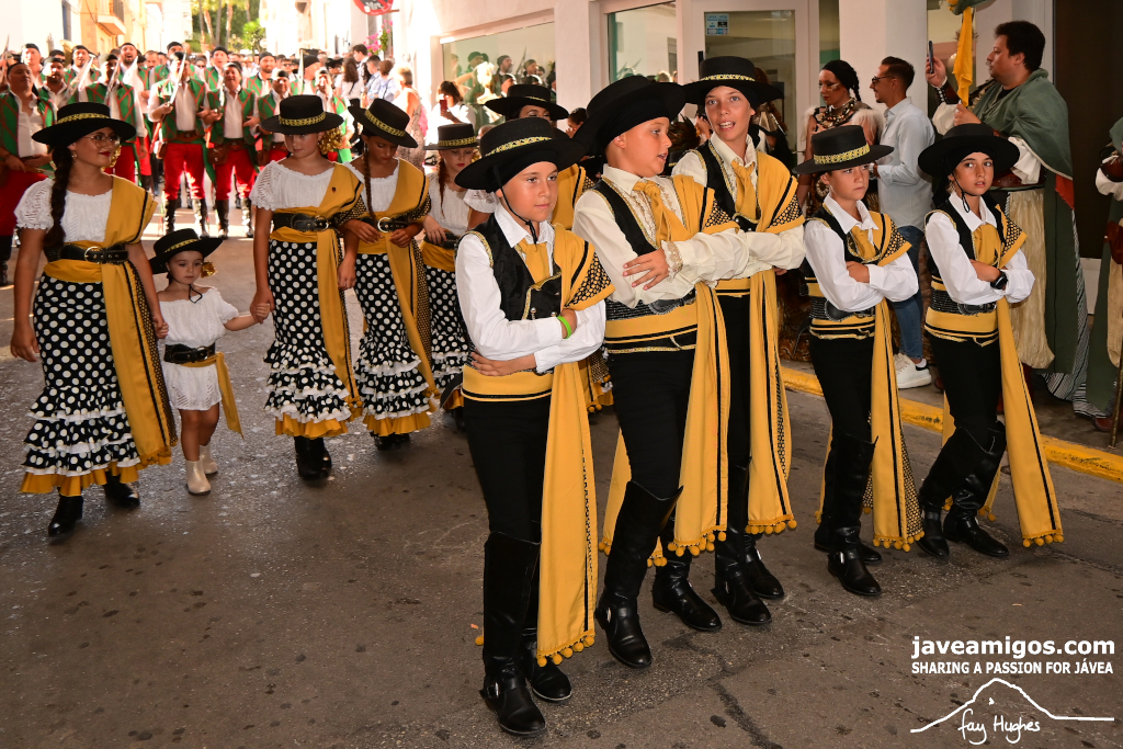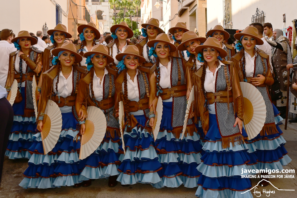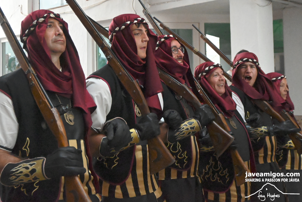 After the last filà mora passed, the great banner of the red-eyed skull of the BAHARIS appeared carried on the back of a camel. Behind it, the talented dancers from Endanza de Xàbia dance academy reminded us of the roots of Filà BAHARIS, founded by a group of Xàbia’s sailors in 1986 and whose name means “sailors” in Arabic.