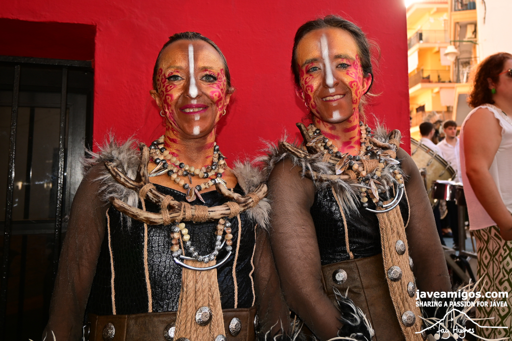 Holding two days of gala parades sharpens the ingenuity and desire to surprise by the xabiera filaes that introduce different elements in order to energize the event. Thus, the different troupes opt for changes in costumes, different makeup on both days, more musicians on Sunday in order to dazzle and bet on the most colourful and triumphant parade as possible, on its second and last day.