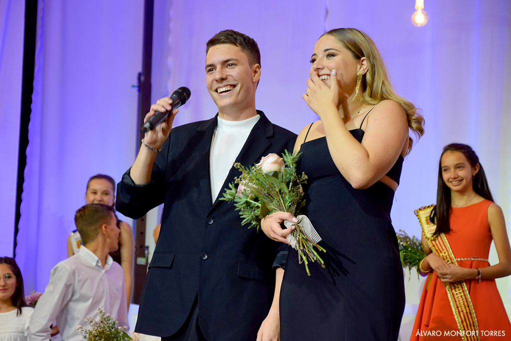 As usual, the elections took place at the Palau Municipal d’Esports Miguel Buigues Andrés. The event was led by Lola Aurora Marcos and Juan Ramón Sapena and part of the proceeds from the tickets went to the Spanish Association Against Cancer. During the intermission, the public has been able to enjoy a fashion show by the young designer from Xàbia, Rubén Bisquert with make-up and styling by Lucía Devesa. After the formalities, a mobile disco was held inside the venue by Bitsound.