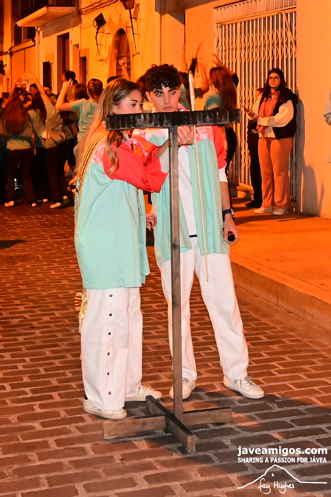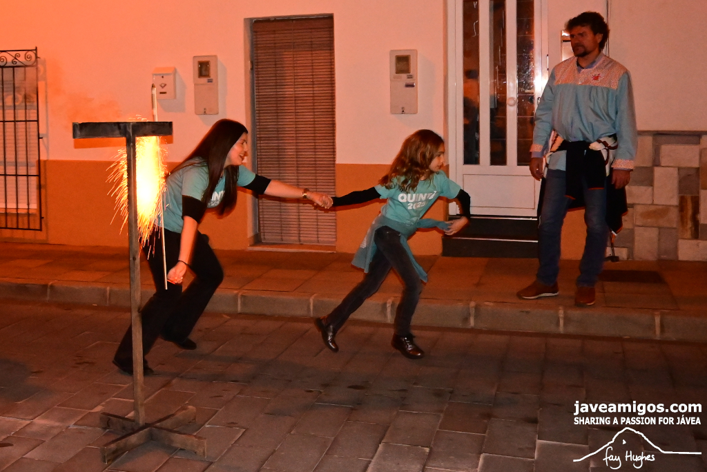 Accompanied by the ubiquitous ‘xaranga’ and the main representatives of 2024, the 130 plus youngsters made their way from the Plaza de la Constitución and dance, sang and jumped along an extended route which took them around the ‘rondas’ and into Thiviers before making their way back to the start, watched by proud parents, encouraging residents and curious onlookers. Rockets heralded their approach, strings of firecrackers known as ‘tracas’ were lit at various points, and the noise was a terrific combination of music, singing and pyrotechnics.