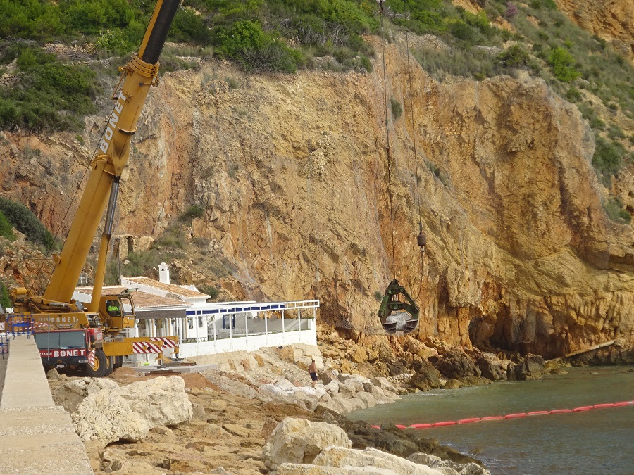 The controversial reinforcement works of the eastern breakwater in the Port of Xàbia continue and this week the disappearance of the Cala del Pope has been finally been achieved after a large crane has filled in the space of the old stone beach.