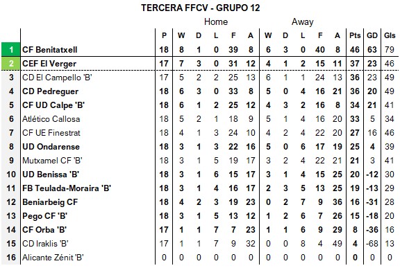 Leading Scorers: Marc Bonifacio Gomar (Daimés CF) – 13 goals in 16 games (2 penalties) / Ramón Matias Mohamed (UE Benifairó) – 13 goals in 18 games (3 penalties).