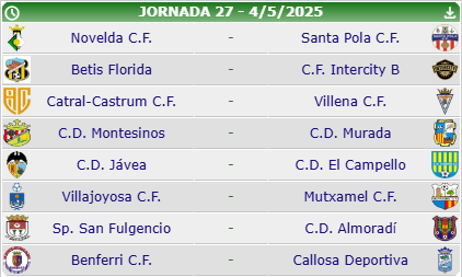 CD Jávea will be looking to get their season back on track next weekend at home to CD El Campello whilst Santa Pola CF travel to Novelda CF, two sides in form at the moment, and Mutxamel CF have a tricky trip up the coast to Villajoyosa CF.