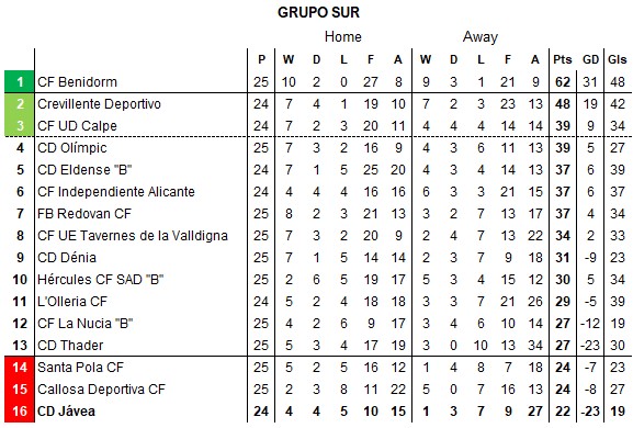A first win since mid-February and a run of three games unbeaten. That slim chance of avoiding the drop is still alive for CD Jávea after a 2-0 win over fellow strugglers CD Thader, the first “double” of the season.