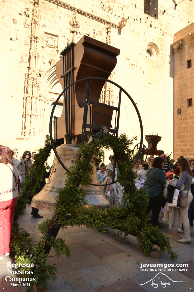 The four bells of San Bartolomé have returned to Xàbia after a long restoration process. On Saturday there was a chance to see them up close and personal in the church square and hundreds of residents and curious visitors turned out to do so. Music was provided by Xirimitab’s and the band of CAM Xàbia whilst the guided tours to the top of the bell tower were fully booked. (There will be another chance at Easter).
