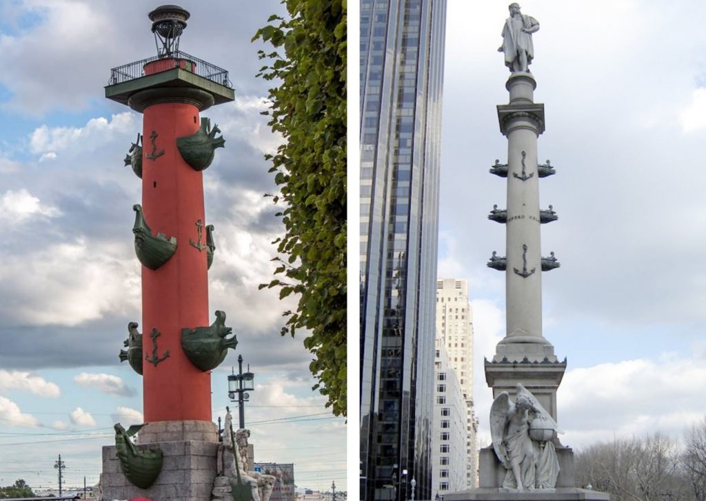 The oldest known and preserved rostral columns is the column erected by Gaius Duilio Nepote in 260 BC to commemorate the victory of Rome against the Carthaginians in the battle of Milae and the rostral columns of Augustus erected in 36 BC in the forum of ancient Rome. Over time, these columns served as a model to create commemorative monuments or simply as decorative elements such as the rostral columns of St. Petersburg erected in 1810 to commemorate Russian naval victories or the monument in Columbus Circle in New York, a space that marks the discovery of America by Christopher Columbus, his statue raised on a rostral column.