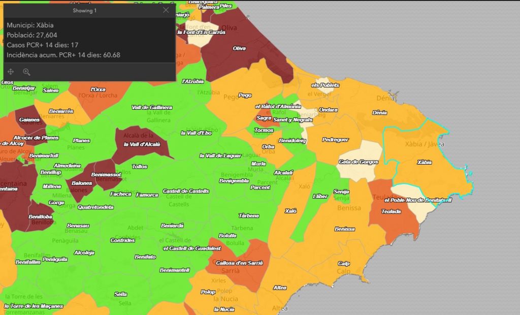 There have been 160 new positive cases detected by PCR test in the Marina Alta in the past 14 days and the region’s 14-day IA rate has dropped to 122.49 cases per 100,000 inhabitants and it remains into the ‘Medium Risk’ level.