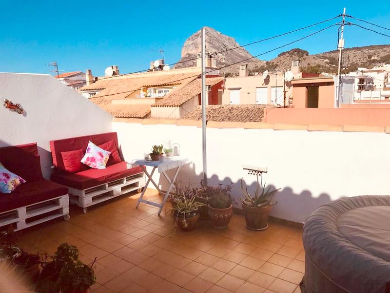 Duplex penthouse situated just outside the old town, close to schools, supermarkets, medical centre, pharmacies, banks, town hall, etc. The apartment comprises on the first floor, three double bedrooms, two bathrooms, kitchen with laundry patio and sitting-dining room with balcony with sea views and on the upper floor it has a sitting room with access to a sea views terrace and master bedroom with bathroom en-suite and access to a spacious terrace overlooking the Montgo and Cabo San Antonio with the sea.