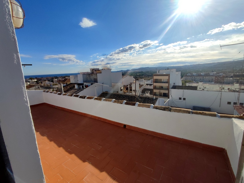 This four-bedroom townhouse is located in the heart of the historic centre of Jávea, close to all amenities. The ground floor has a commercial space whilst the first floor has direct access from the street and consists of a sitting room with balcony space, a kitchen, a bathroom, and a dining room with fireplace and patio. The second floor has three bedrooms and a bathroom whilst the third floor has a sitting room with terrace and access to a solarium from where there are open views towards the sea.