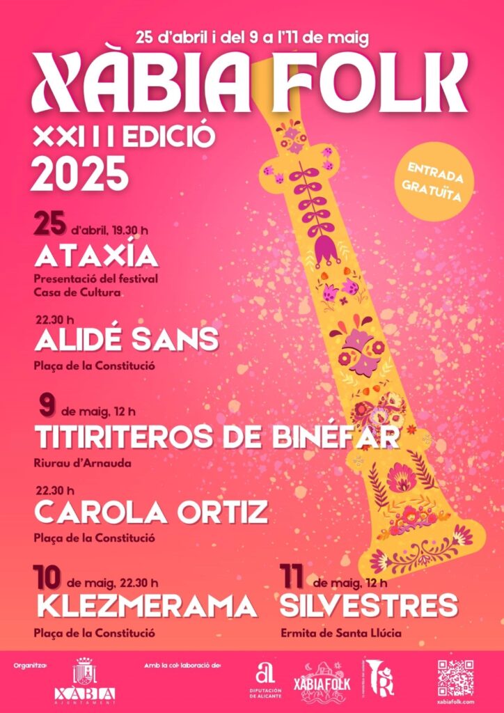 Xàbia Folk is a festival created in 2002 with the aim of promoting the growing artistic offerings emerging in the field of folk music since the early 1990s, a time when traditional and ethnic music was revived across Europe, and when many new voices were reviving the folk scene, inspired by roots music. The festival has always sought to highlight established and emerging Valencian artists and have them share the lineup with renowned groups and solo artists with “designations of origin” from the rest of Spain and other foreign countries, with a gender perspective that makes the importance of women in this music sector highly visible.