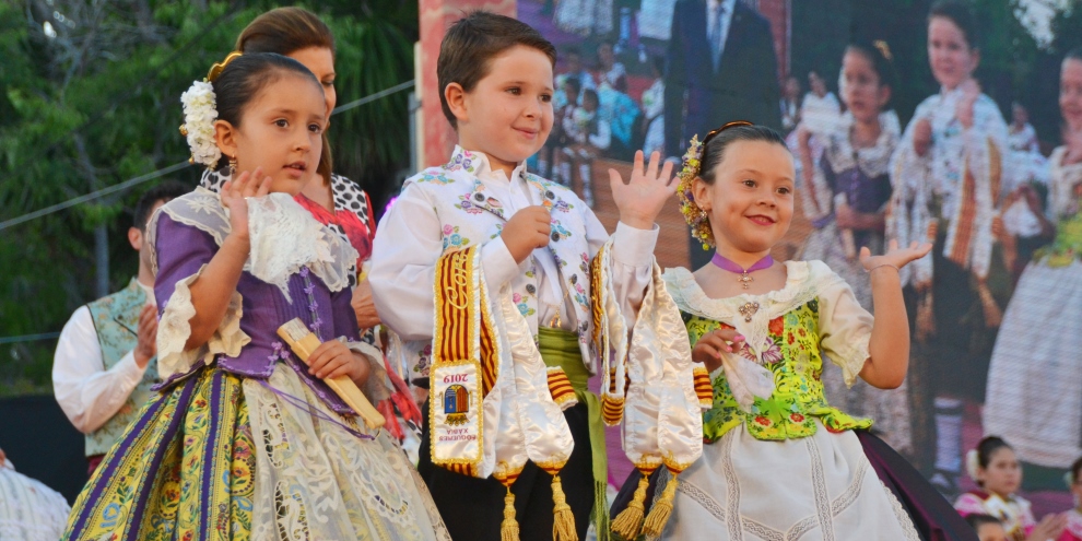 The Fogueres de Sant Joan de Xàbia kicks off with the Proclamación de las Reinas, the official presentation of the queens, their courts of honour and their escorts, all dressed in traditional elaborate dresses and perfectly cut suits. Everything is perfected down to the finest detail. The girls’ hair is styled in two traditional ways; either the fallero which are the Princess Leia-style buns on the side of the head, or the xabiero, which is on the back of the head. The boys shave close, get their hair cut, often in the latest fashion, and then dress in their traditional suits.
