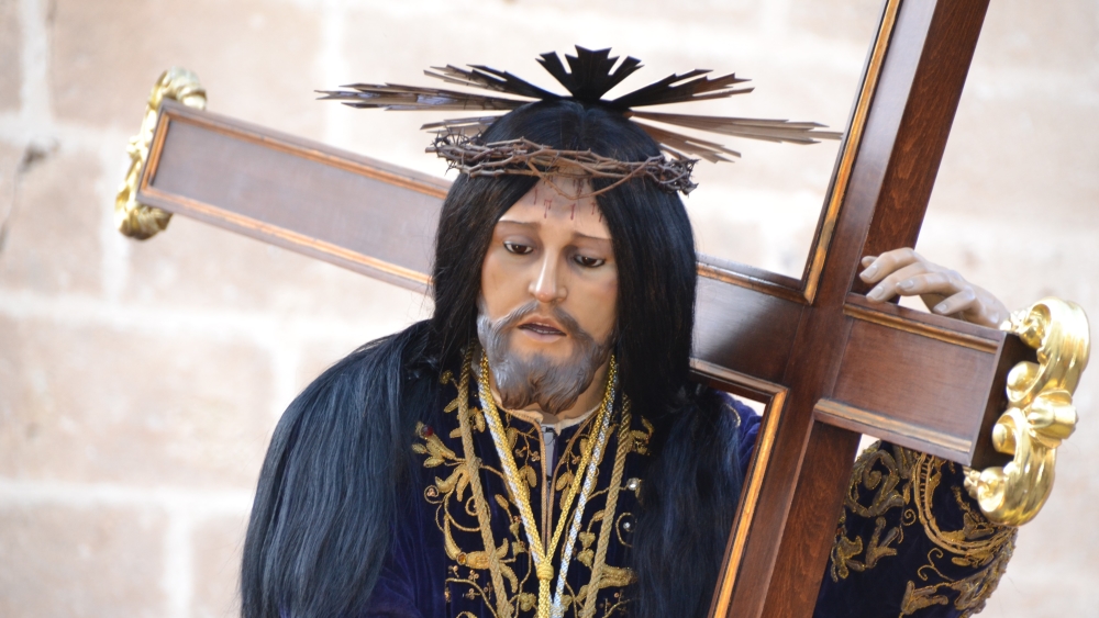 As luck would have it, the face of the Nazarene of Calpe, which had survived the war, had been sculpted from a mask created from the original image of Xàbia and the tunic it had worn had been removed and hidden away. A replacement image was commissioned from the Valencian sculptor José María Ponsoda Bravo, the one that we see today, and it made its first appearance in procession in 1941. One thing to note: Xàbia’s Nazarene is the only one in Spain where the cross slopes downwards, being smaller in size and becoming more a symbol than representation.