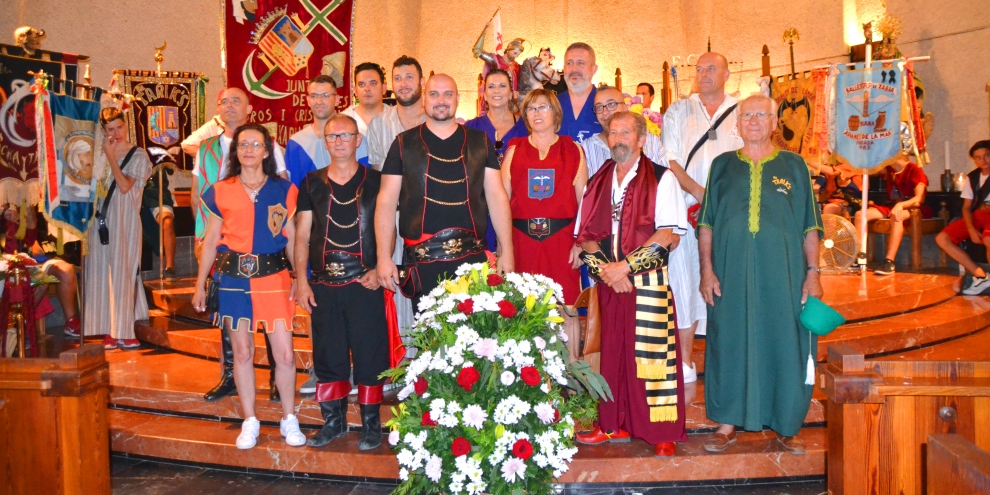 Although the fiesta is based in the port area, it does once move into the historic centre of Xàbia for a special flower offering at the niche of San Jaime. The saint is located at the eastern end of a narrow street which runs parallel to the Ronda Sur, a road which is now called Carrer del Ravalet but was once called Calle San Jaime – the street of Saint James, the patron saint of the Moros i Cristians de Xàbia.