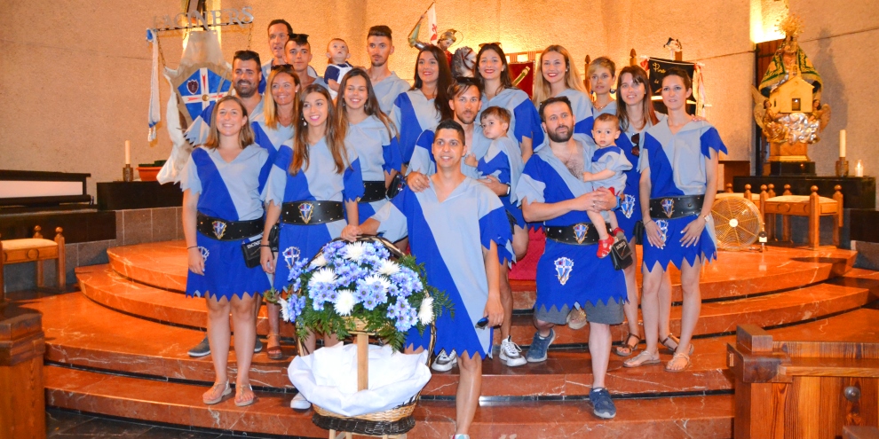 Each fila will make their offering and poses for photographs; the members of the town hall and the other fiesta commissions do the same. The standard bearers arrive with the full pomp worthy of their positions, followed by the captains and there is the inevitable scramble for photographs This is followed by a short blessing made by the priest.