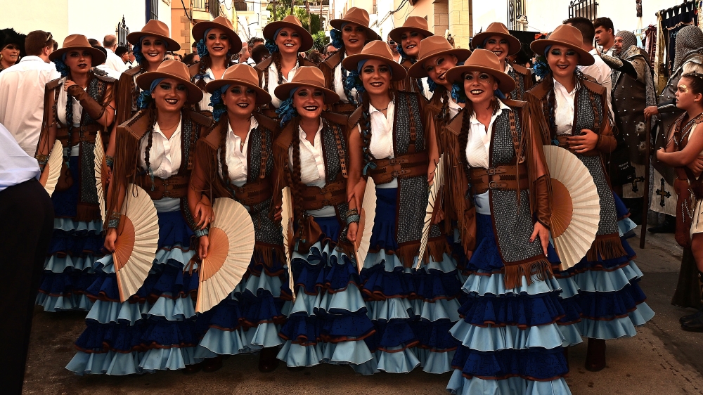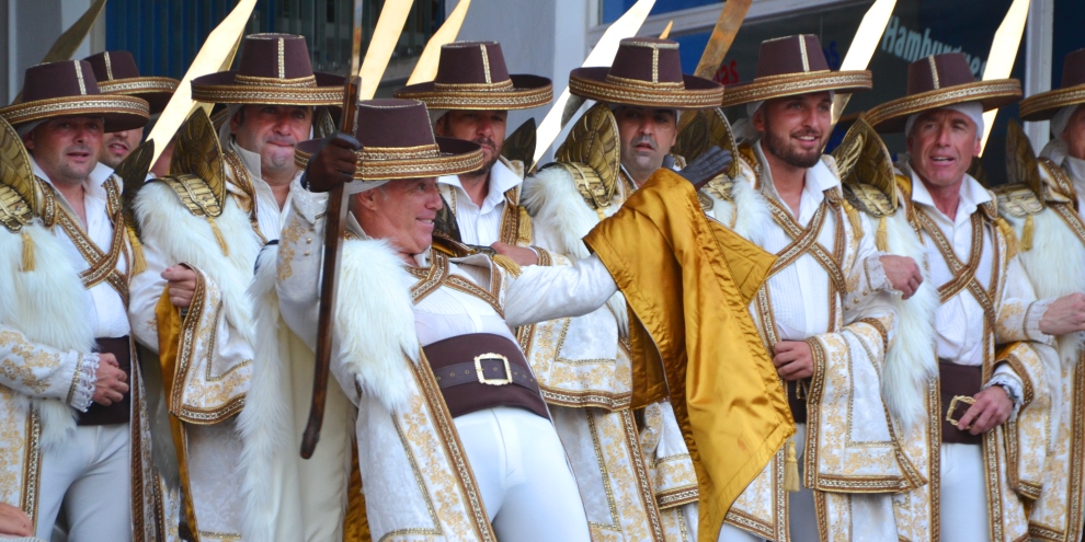 Each side has its own style of music with the Moors swaying majestically from side to side at barely 55 steps per minute – Los Moros Españoles is a perfect example and a favourite of ours – whilst the Christians bounce quickly along the street at a swifter 85 steps per minute; Creu Daurà is a popular choice for the filaes of the cross and, again, is one of our favourites.