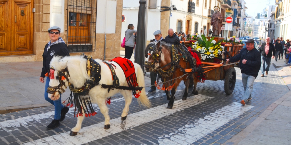 On the feast day itself – January 17th- in Jávea’s port area, the day begins with a modest procession through the streets of the port, accompanied by the sound of traditional dulzainas and drums. Participants then gather at the iconic Loreto Church for a solemn Mass, celebrating the saint and his enduring connection to animals.