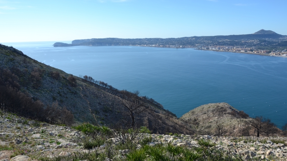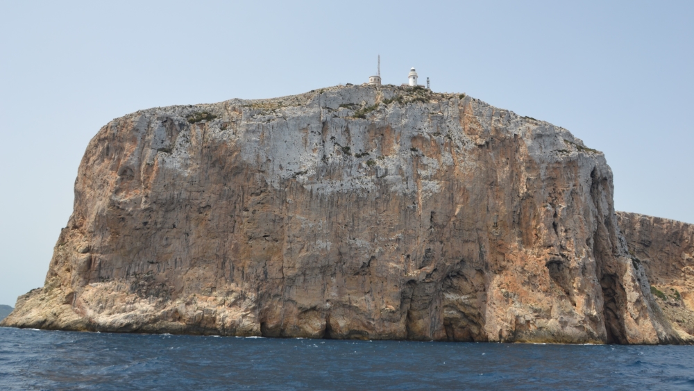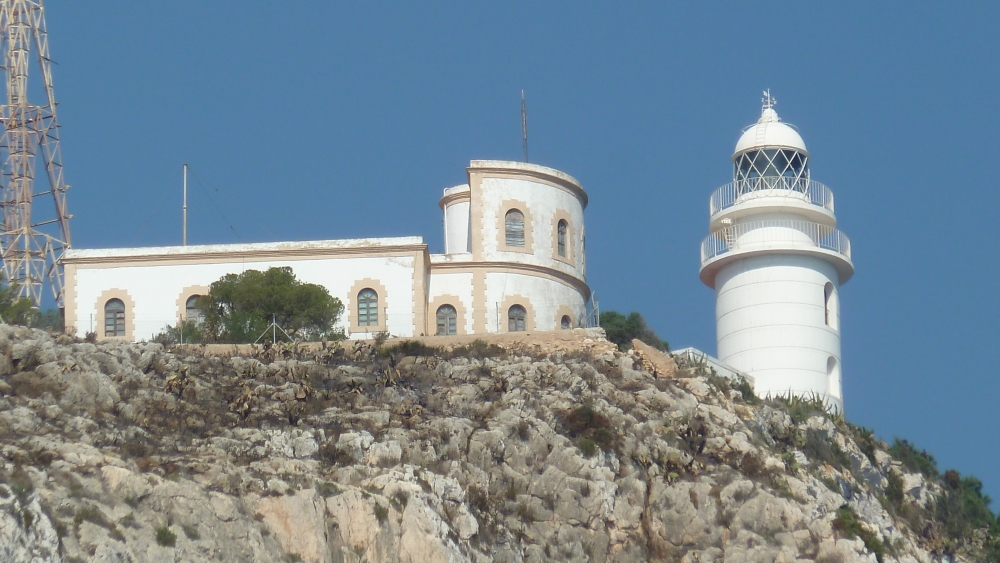 A short walk north from the lighthouse car park a little further up the road rewards visitors with a breathtaking view north over the wide Gulf of Valencia, west along the steep north flanks of the headland, and on an exceptionally clear day, the island of Ibiza, around 90 kilometres away, can be glimpsed shimmering on the horizon.