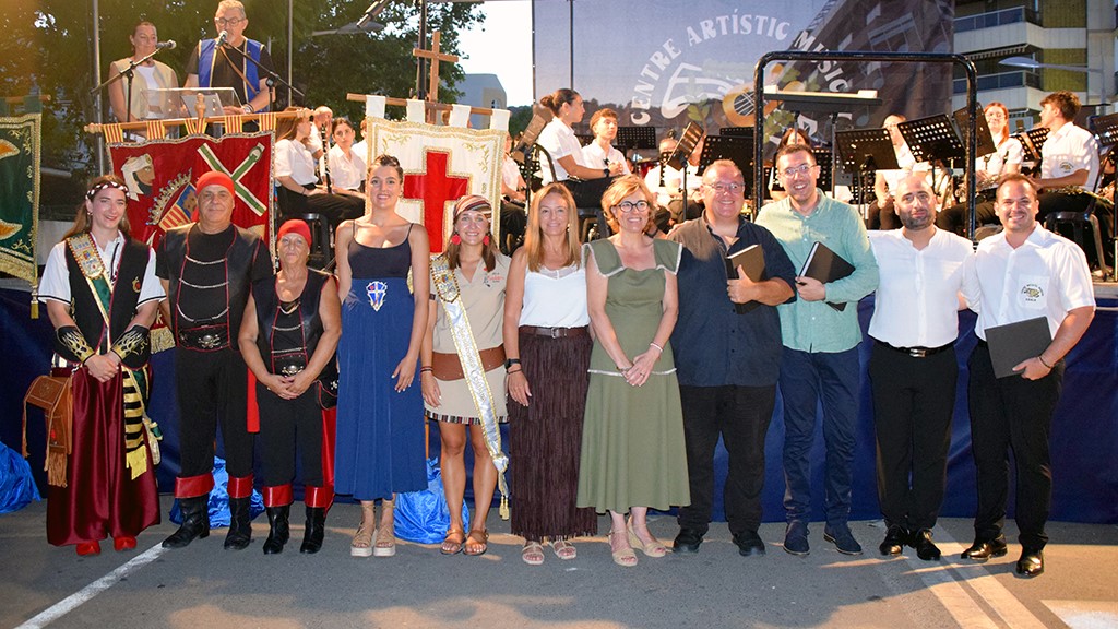 Under the direction of Gonzalo de la Guía, the first half of the concert featured iconic pieces such as Als Llaneros Dianers by Rafael Mullor (a dianero pasodoble), Tarde de Abril by Amando Blanquer (a Moorish march), Sala i Soler by Francisco Valor (a Christian march), Lloança by Jaume B. Santonja (a Moorish march), and Santos, Poetas y Guerreros by Enrique Igual (a symphonic Christian march poem with a reading by Joan Bou).