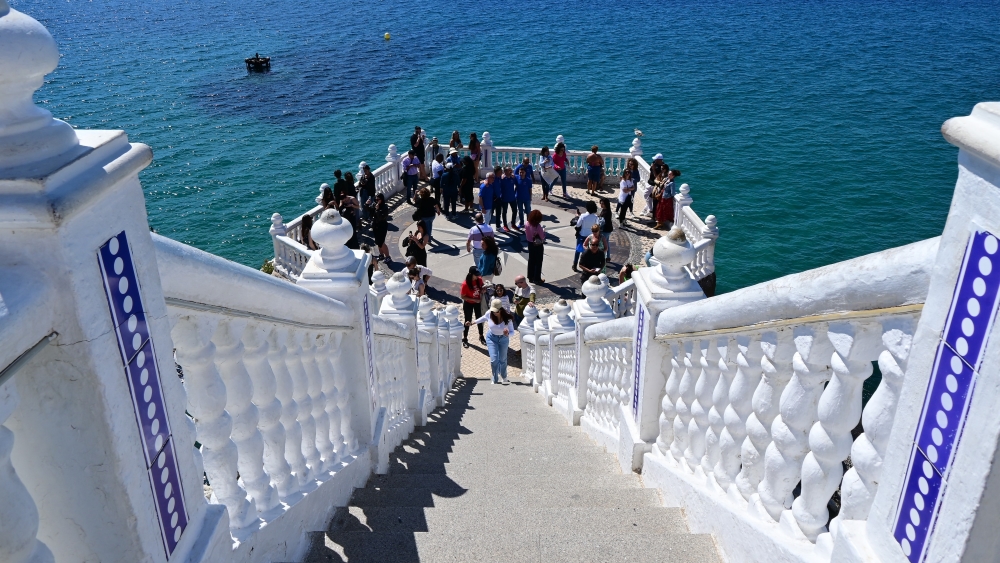 As you walk along the promenade, the beach stretches out to your left, with the iconic Benidorm Island visible off the coast. We’re heading along the promenade, towards the obvious promontory and the Plaça del Castell, the famous square that offers stunning panoramas of the coastline and Benidorm’s skyline, and the steps down to the Balcón del Mediterráneo,