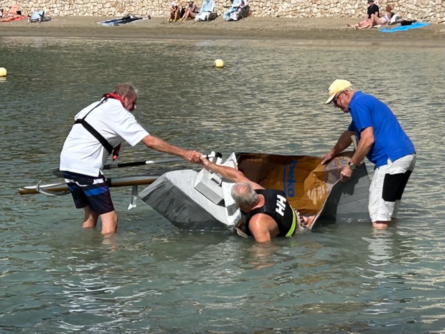 Five cardboard boats appeared on the beach at El Portet to make their way around a mark set 100 metres off the beach, and back again, in the fastest possible time.