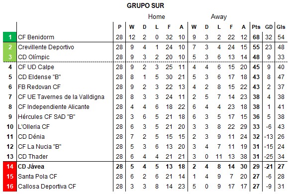 However, a superb run in the last few weeks, which has included a stunning home defeat of champions CF Benidorm and an incredible 4-1 away win at CF Independiente Alicante, has given the club a real chance of avoiding the drop. With two games remaining, there is now a relegation battle between seven sides, including CD Jávea and CD Dénia.