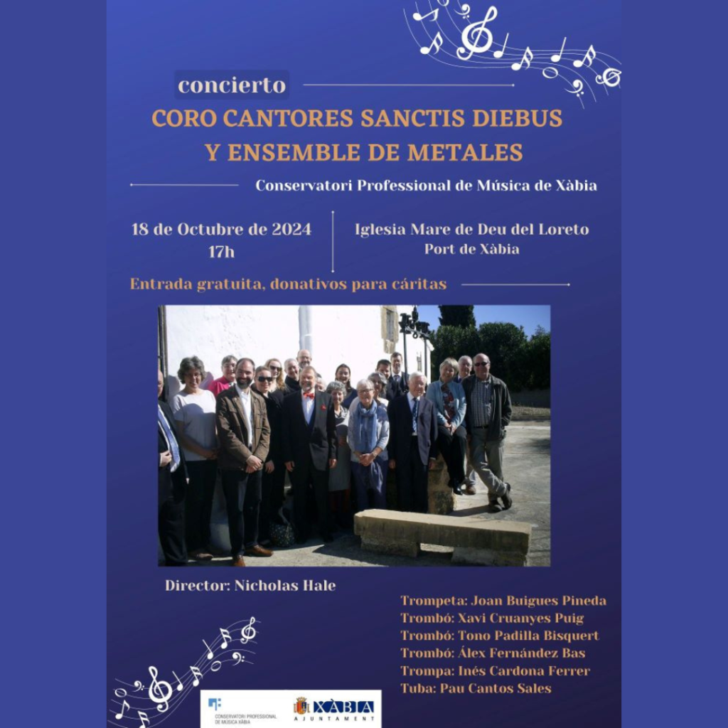 A group of students from the Professional Music Conservatoire of Xàbia will participate in a concert that will be performed by the prestigious Cantors Sanctis Diebus (CSD) Choir from England at 5.00pm on Friday 18th October at the Iglesia de la Mare de Déu de Loreto.