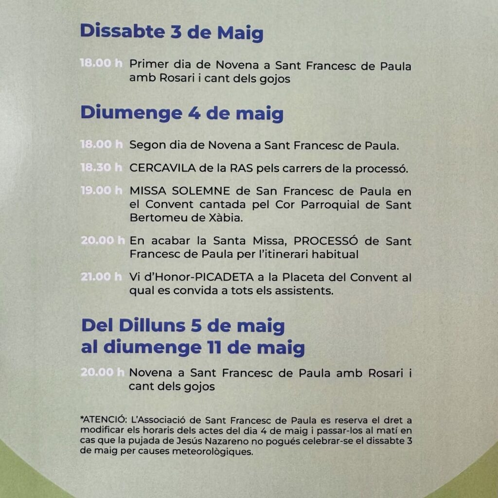 « All Events This event has passed. Event Series: โ Fiesta SAN FRANCESC DE PAULA | Solemn Mass and Procession โ Fiesta SAN FRANCESC DE PAULA | Solemn Mass and Procession May 4 @ 19:00 CEST « โฝ PRIMERA FFCV | CD Jรกvea v CD El Campello ๐ผ CHARITY CONCERT in aid of Aspanion » Share Tweet LinkedIn Email Print Add to calendar Google Calendar iCalendar Outlook 365 Outlook Live Details Date: May 4 Time: 19:00 CEST Series: โ Fiesta SAN FRANCESC DE PAULA | Solemn Mass and Procession Event Category: Fiesta Venue PLACETA DEL CONVENT Placeta del Convent Javea, Alicante 03730 Spain + Google Map Related Events ๐ถ ๐ง๐๐ฅ๐๐๐ข ๐๐๐๐ฆ๐ง๐ ๐๐๐ง๐๐ก๐ @ ๐๐ผ๐ฟ๐ฎ๐น๐ฒ๐ ๐๐ฎ๐๐๐ฟ๐ผ๐ฏ๐ฎ๐ฟ December 7 @ 16:30 CET โญ ๐๐๐๐ฆ๐ง๐ ๐ฆ๐๐ก๐ง๐ ๐๐๐จ๐๐๐ | La Criada ยท The Call to Fiesta December 12 @ 19:30 CET โญ ๐๐๐๐ฆ๐ง๐ ๐ฆ๐๐ก๐ง๐ ๐๐๐จ๐๐๐ | Pilgrimage and Mass December 13 @ 10:00 CET