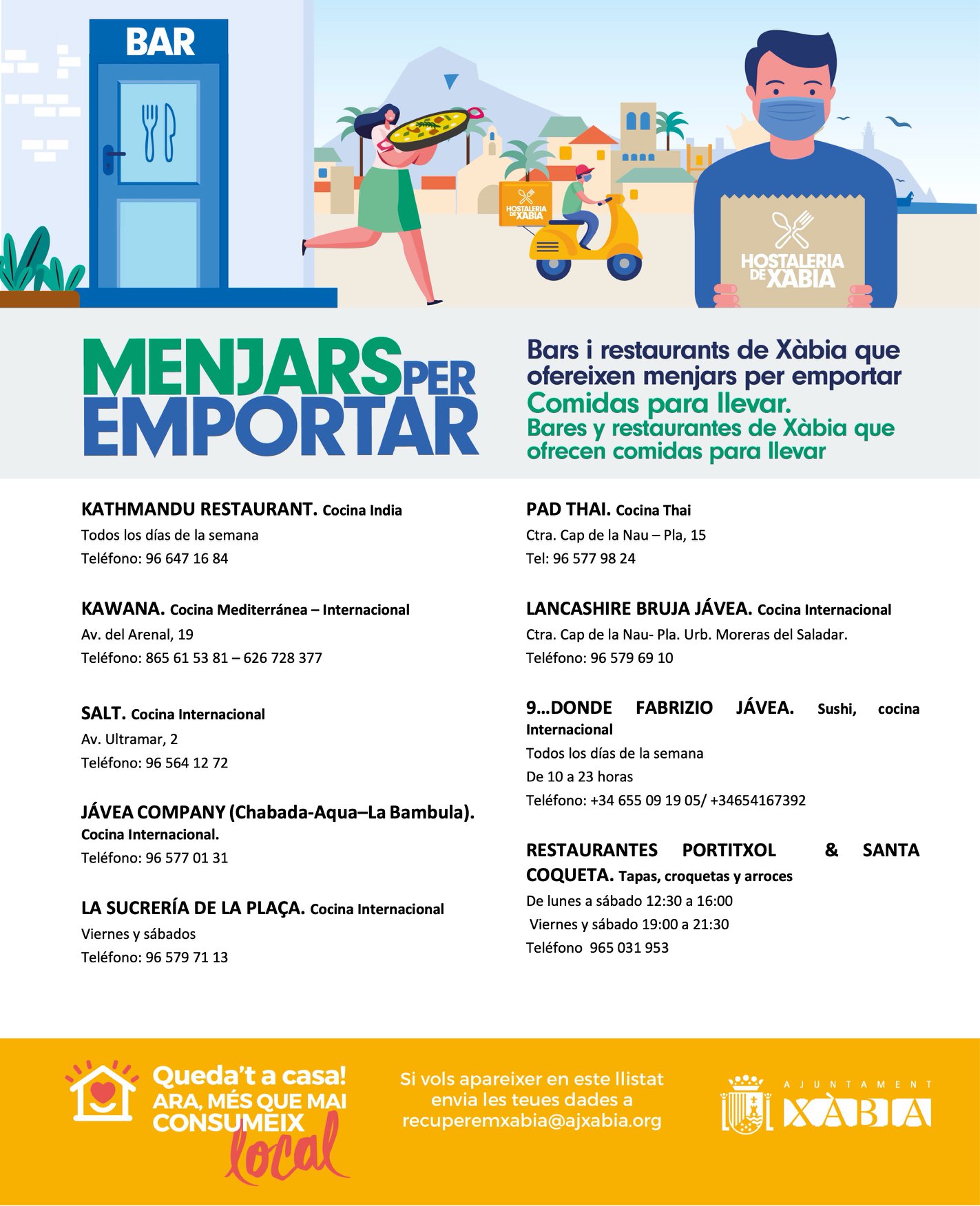 javeamigos.com lists those bars and restaurants which are offering a takeaway and home delivery service during this difficult time.