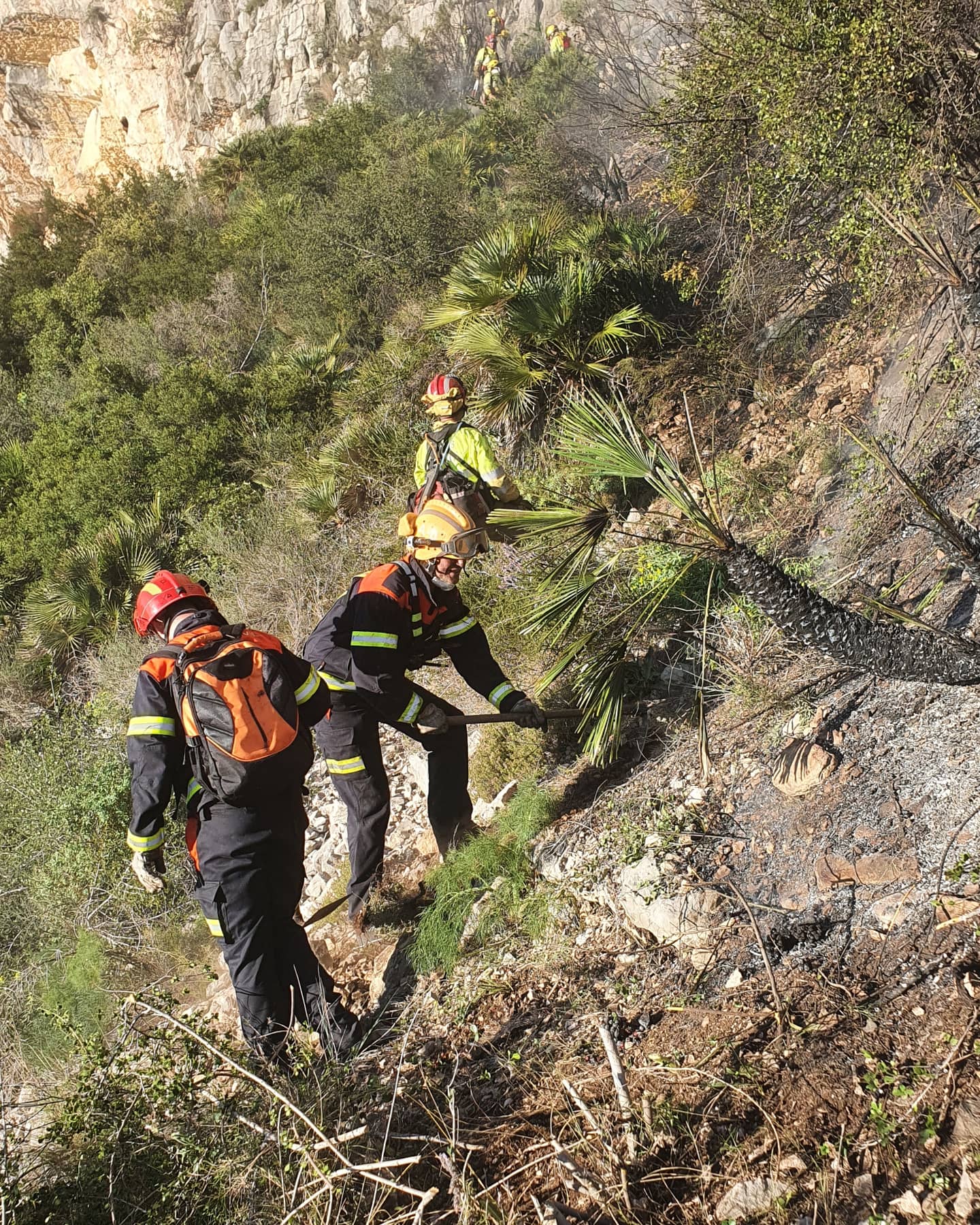 Recklessness is thought to be in the origin of the fire which was battled after the rapid mobilization of both professional and voluntary fire-fighting teams, the latter provided by members of the Protección Civil and the ISVH Voluntarios, as well as four air assets who battled with high winds and braved huge steep cliffs to tackle the blaze.