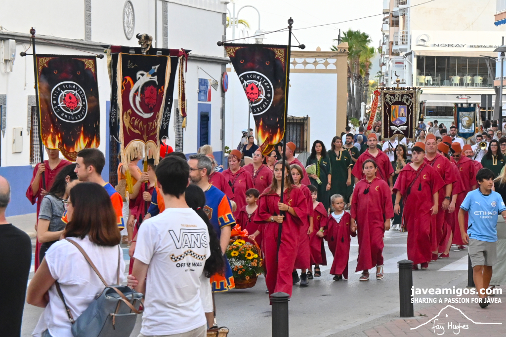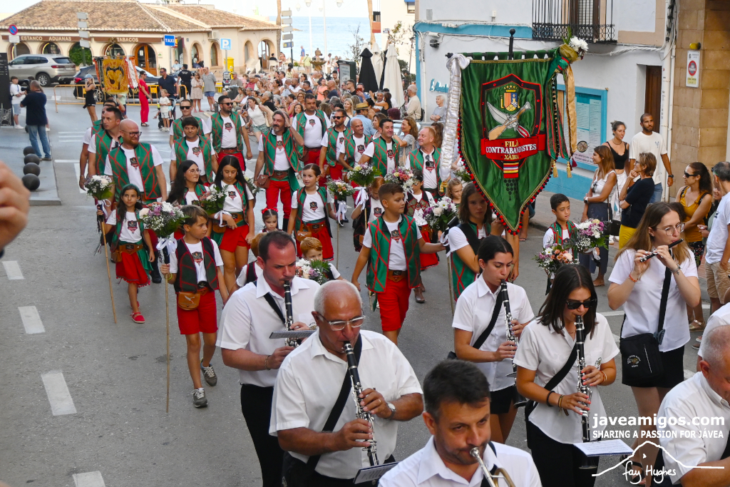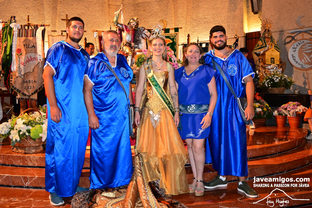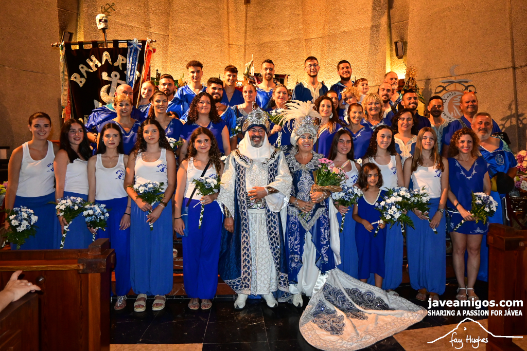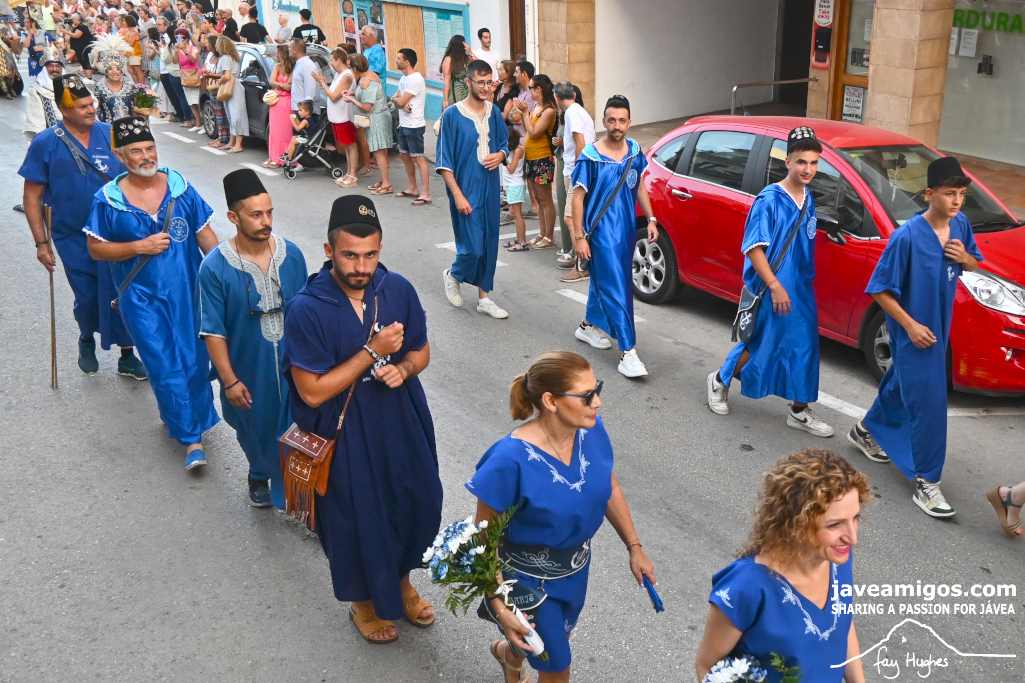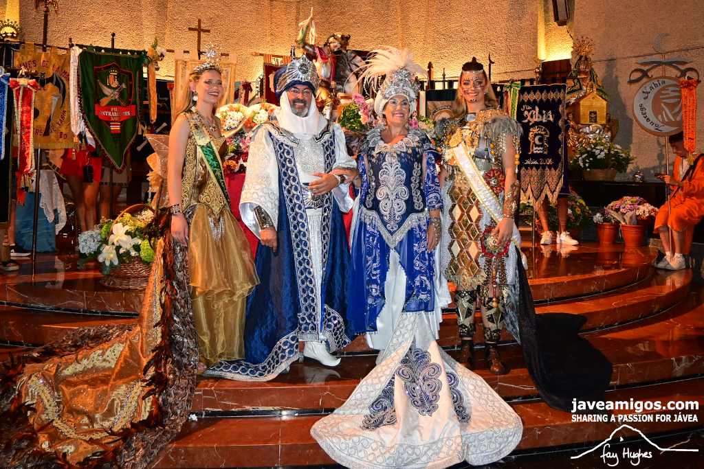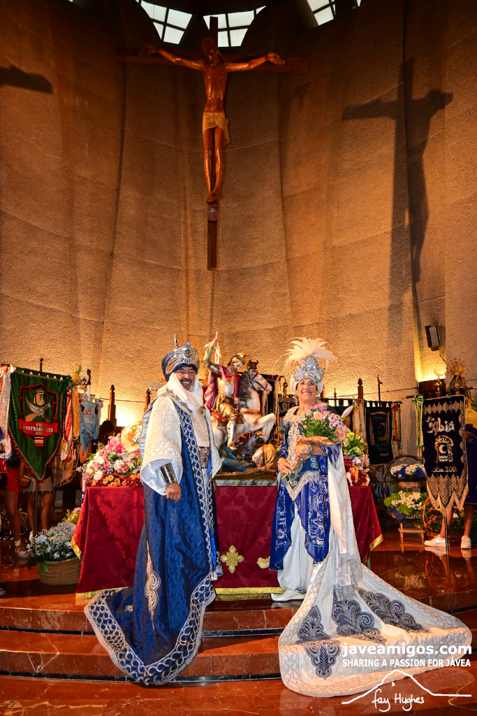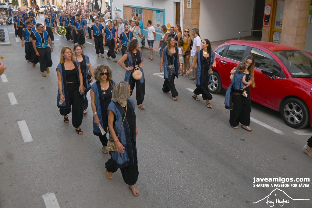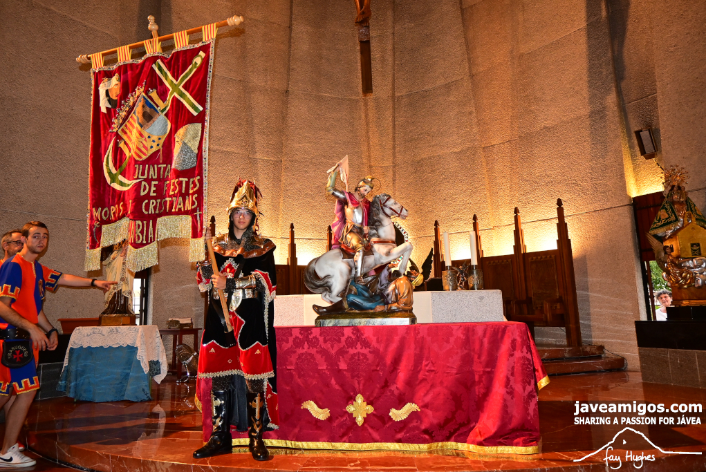 The offering of flower to Sant Jaume represents the beginning of the grand finale to the Moors & Christians fiesta in Xàbia, the last few days intensifying in colour and noise that will culminate in the grand gala parade of the Filà Capitana BAHARIS on Sunday evening.