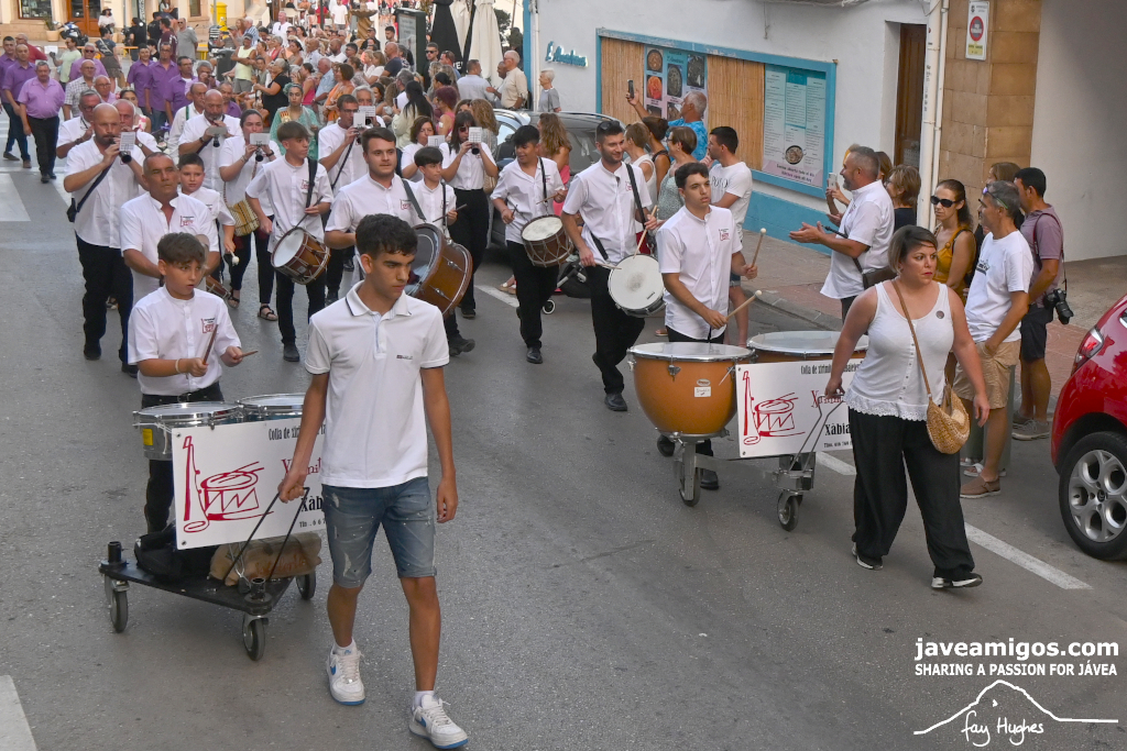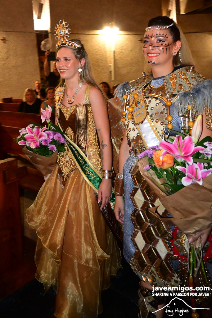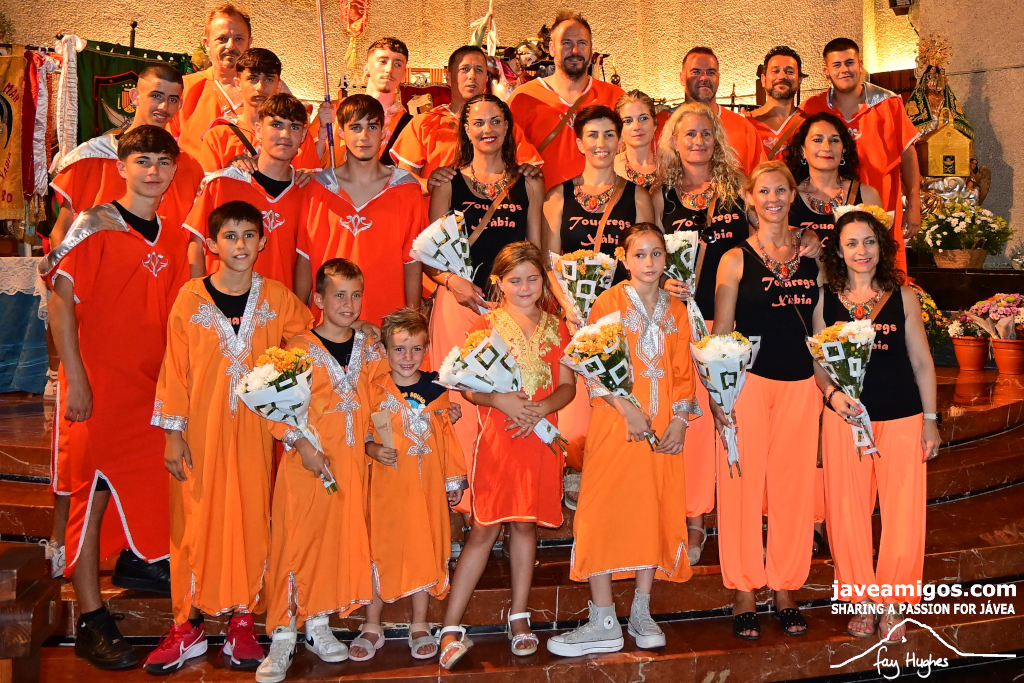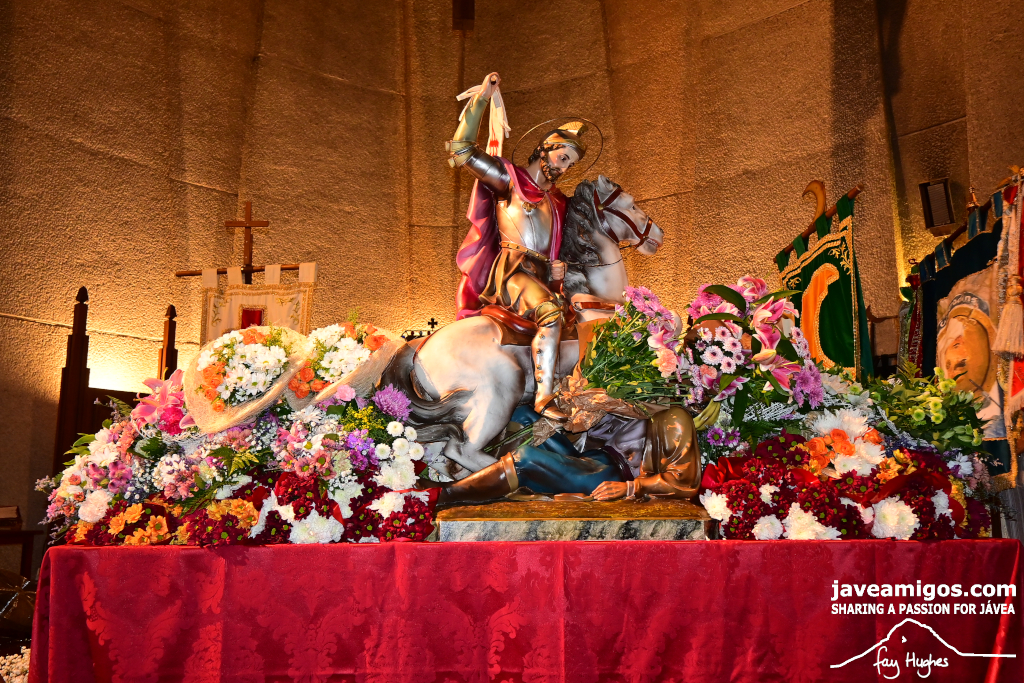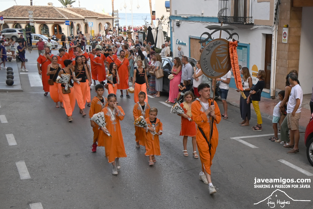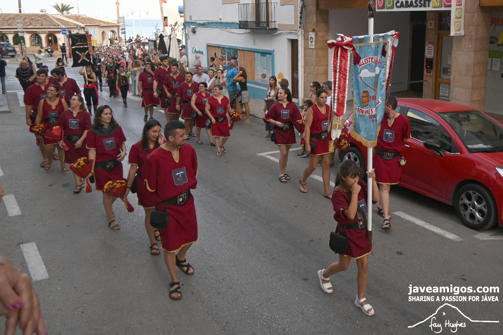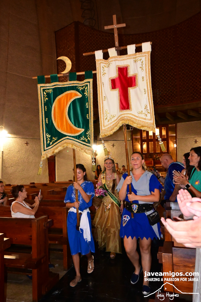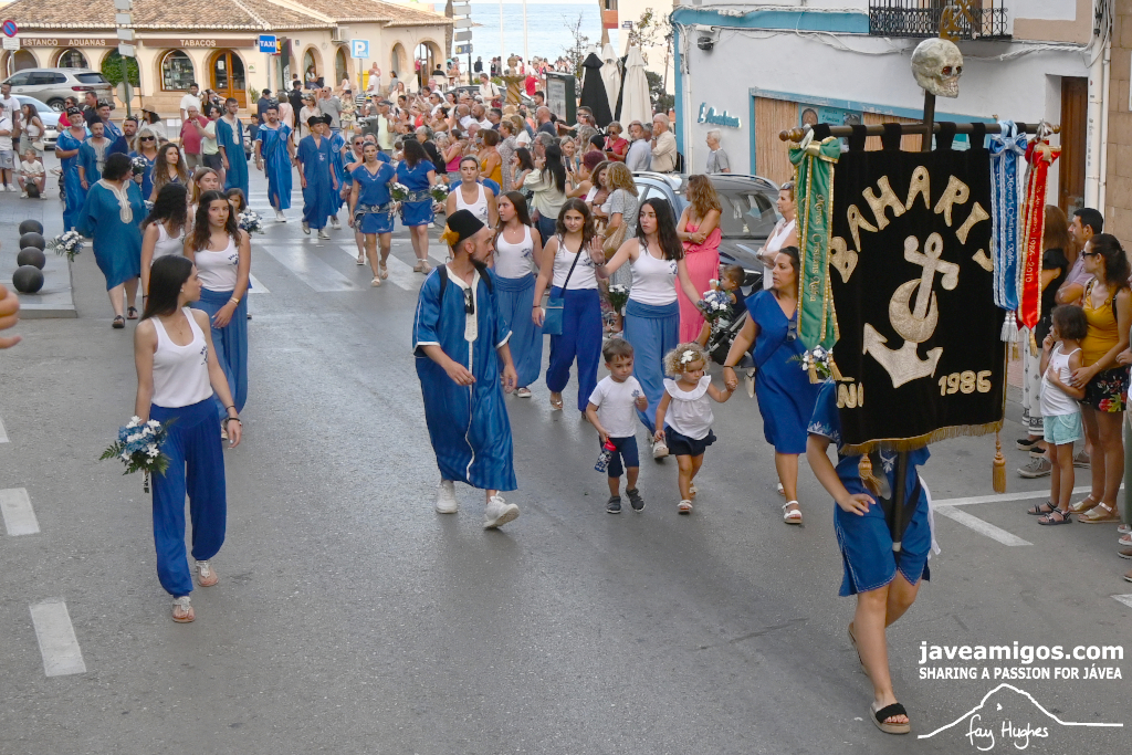 The offering of flower to Sant Jaume represents the beginning of the grand finale to the Moors & Christians fiesta in Xàbia, the last few days intensifying in colour and noise that will culminate in the grand gala parade of the Filà Capitana BAHARIS on Sunday evening.