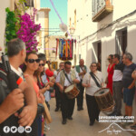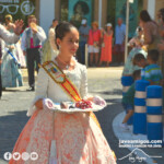 After passing by the niche of Jesús Nazareno in the street of the same name, the procession arrived in Carrer Cups, a narrow street located in the heart of the historic centre where Infantil Queen 2020 Ariadna Serrat Molina and the juvenil president Mar Rodríguez Benlloch made the offering.