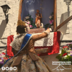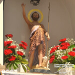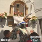 There are two niches dedicated to Sant Joan in the historic centre. The first is in Carrer Teulería, just a short walk from the olive tree roundabout and it was here that the three female presidents made the offering – Zara Sancho Román Quintà 2020 “Tot per L’Aire”, María Liehr Olivares Quintà 2021 “La Desastrà”, and Clara Buigues Buigues Quintà 2022 “La Retornà.