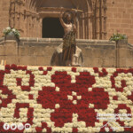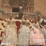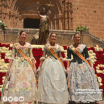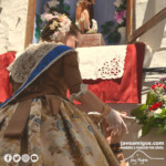 The procession arrived in the church square where the floral tributes still stood and where the three Queens – – Marta Ortuño Torres (2020), Nara Rodríguez Sapena (2021) and Olivia Clemente Ferrándiz (2022) – made their offerings to grand applause.