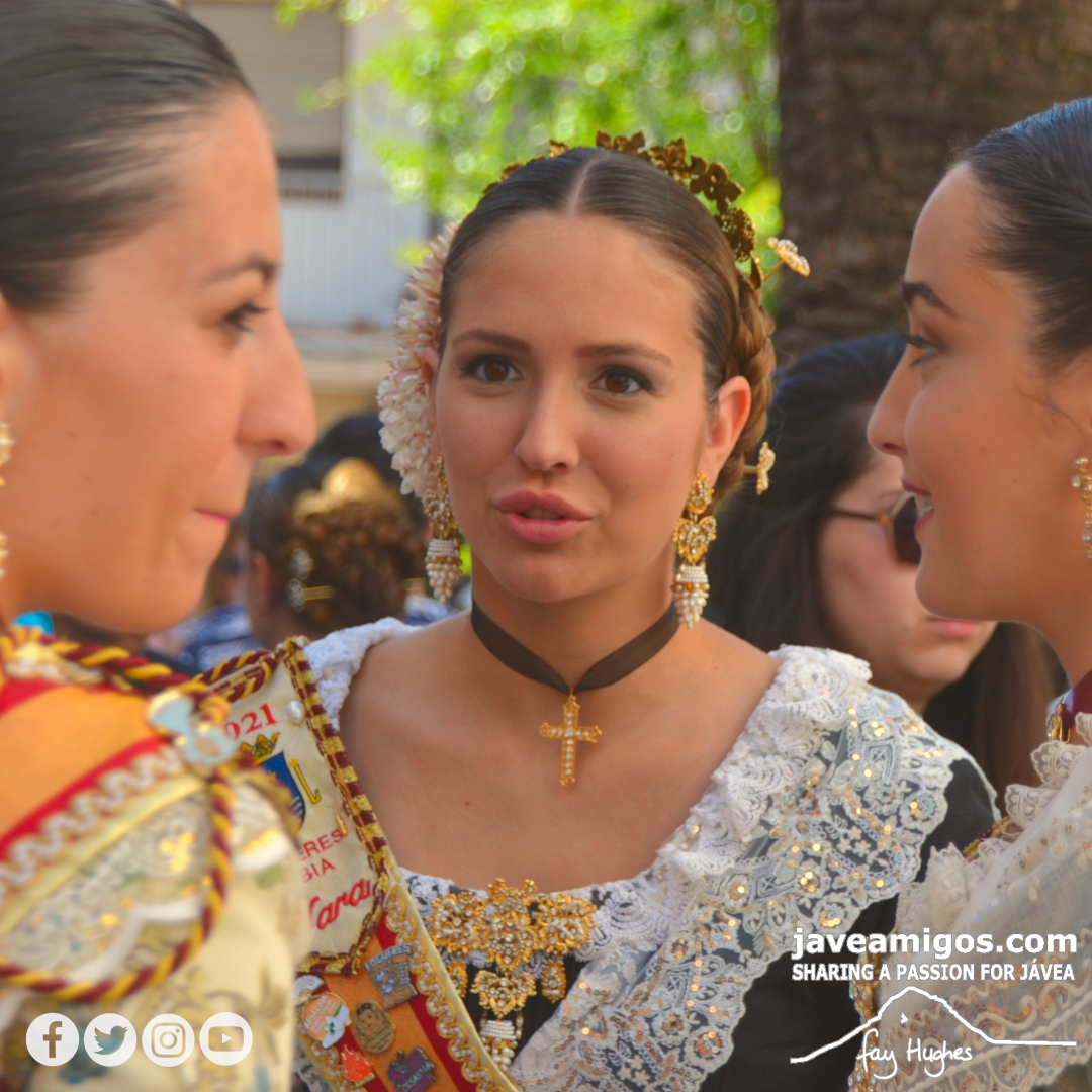 The procession arrived in the church square where the floral tributes still stood and where the three Queens – – Marta Ortuño Torres (2020), Nara Rodríguez Sapena (2021) and Olivia Clemente Ferrándiz (2022) – made their offerings to grand applause.