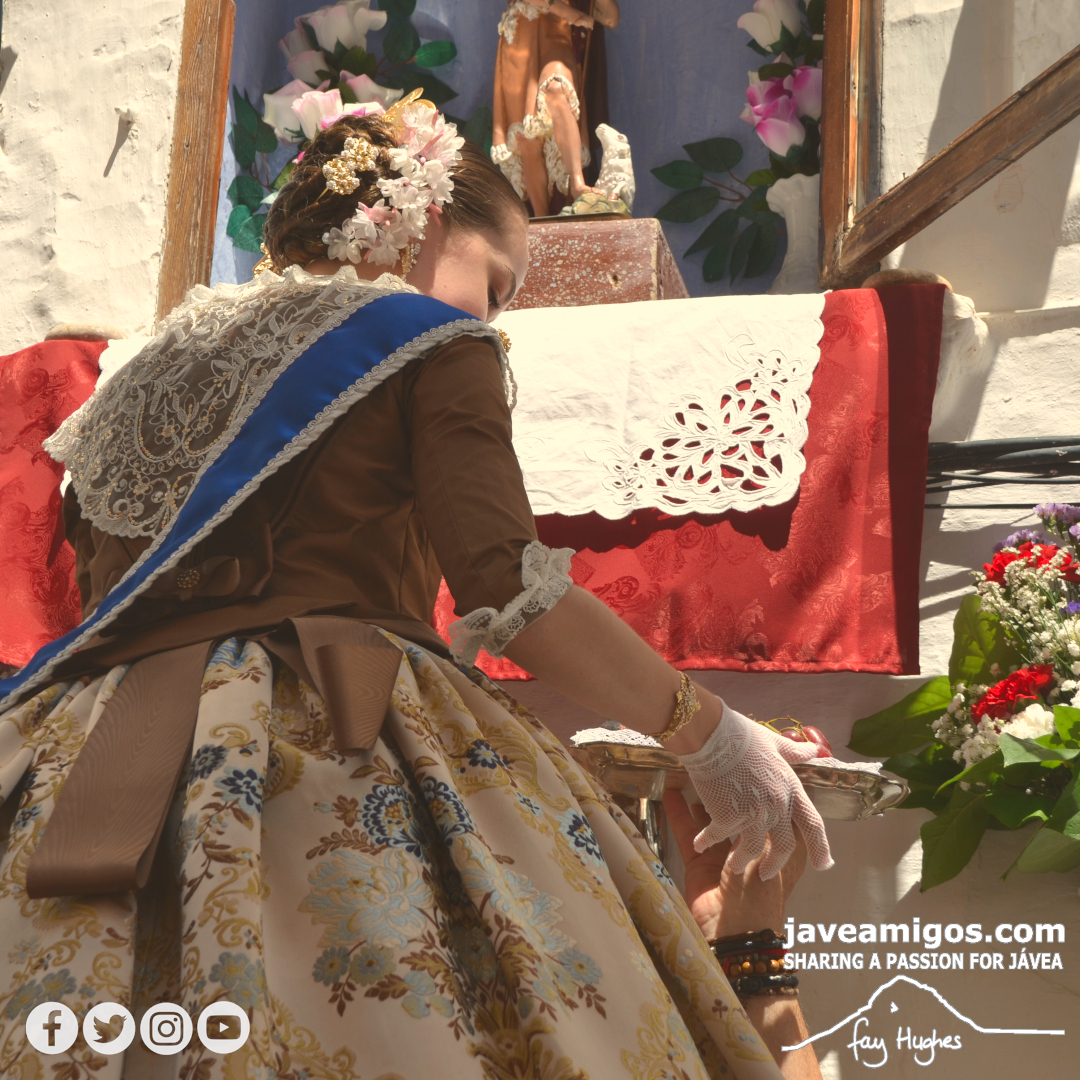 The offering symbolises the traditional fruits of the dry lands of Xàbia and perhaps the town’s most precious delicacies. Indeed, the raisin industry was responsible for a boom in the local economy during the 19th century through large-scale production and commercialisation with exports to the United Kingdom and North America.