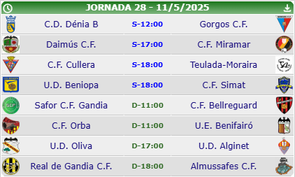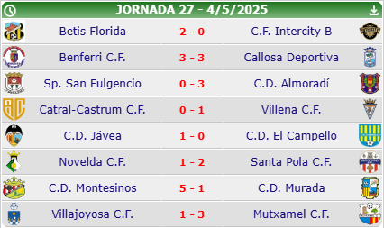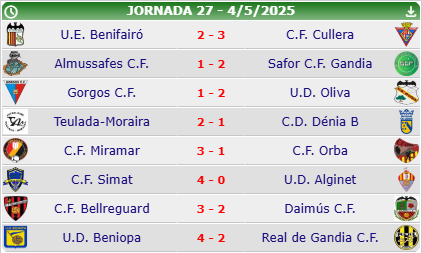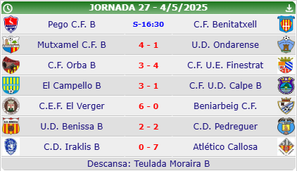 NOTE: The missing result was Pego CF B 2-3 CF Benitatxell.