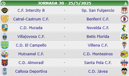 Callosa Deportiva CF currently sit in 8th spot in Group 4 with 41 points from 29 games and are currently on an eleven game unbeaten run.