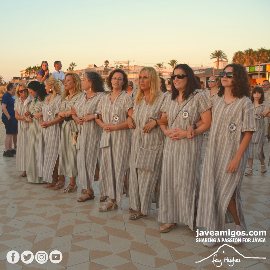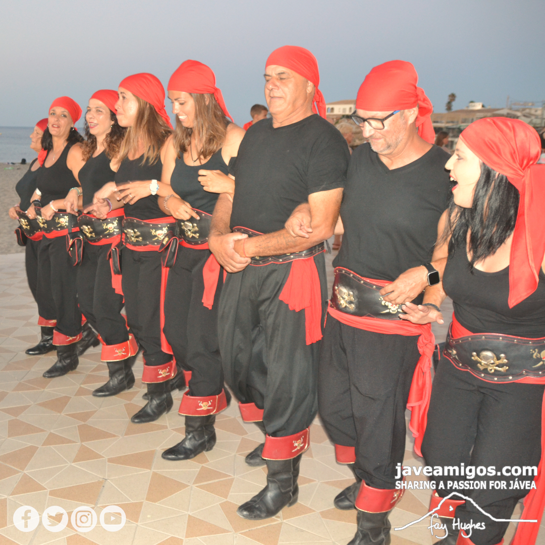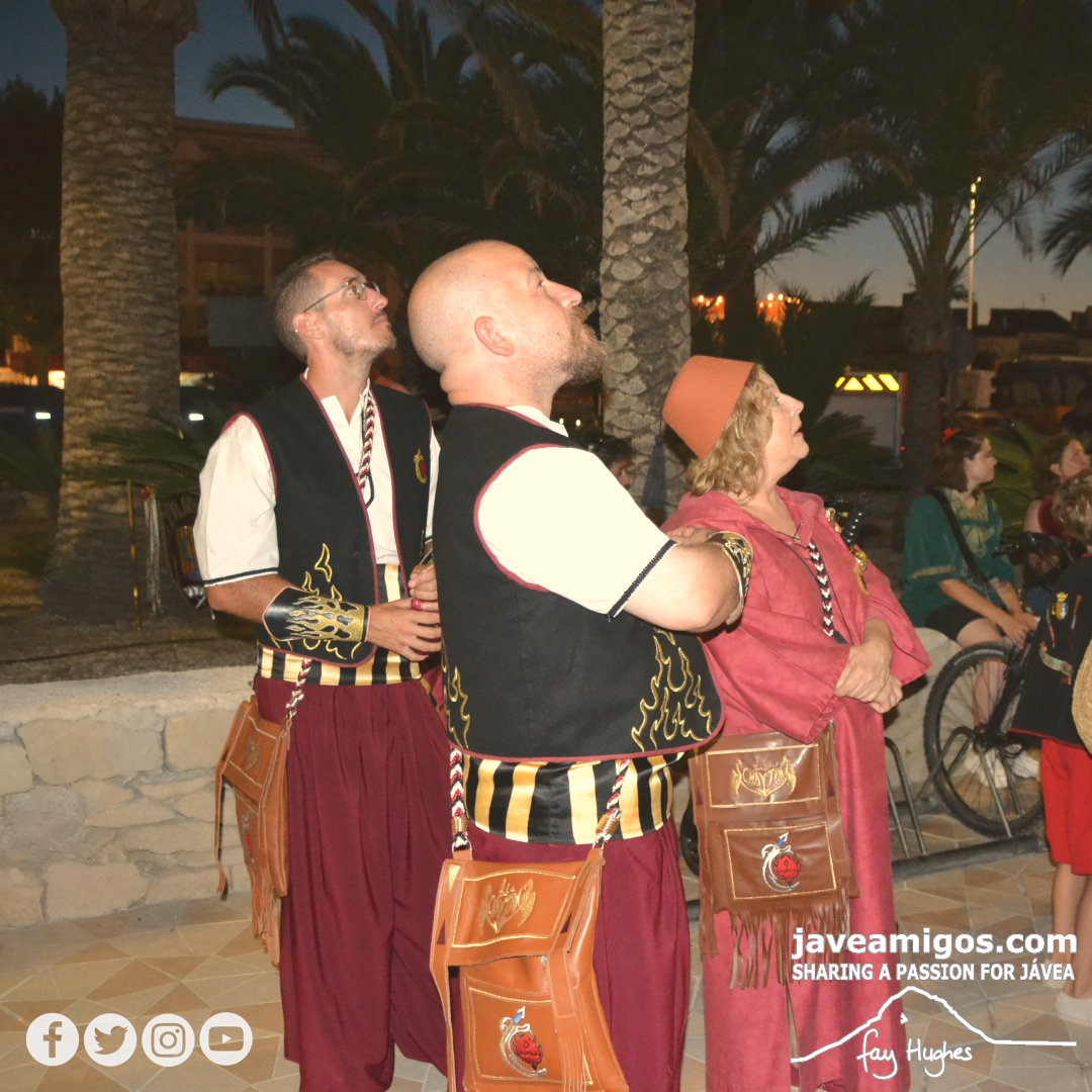 The simple parade, cheered on either side by curious visitors to the Arenal, ended with a modest firework display and an appetizer offered by the La Fontana Restaurant, before the troops drifted off into the night to prepare for their next visit on Tuesday evening, this time to the historic centre of Xàbia to lay flowers at the niche of the patron saint Sant Jaume.