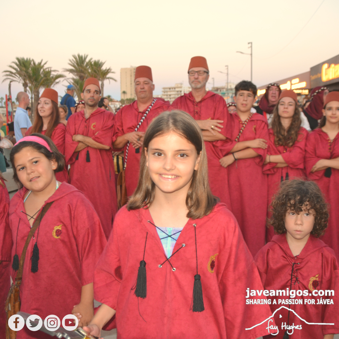 The troops of the Moros i Cristians de Xàbia continue to spread their joy and colour through every corner of Xàbia. After taking the streets of port at the weekend, they have conquered the lands of El Arenal in their traditional visit to the beach promenade of Paseo del Tenis David Ferrer.