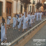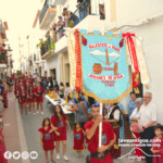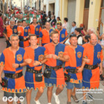 The rows departed from Plaza Marina Alta passing through Príncipe de Asturias, Foguerer and Virgen de la Merced until reaching the special street. The Moor and Christian standard bearers, Lucía Llidó and Carla Llidó, together with the Ballesters Captains, Rosa Catalá and Florencio Mata were in charge of making the offering of the flowers to the saint in his niche at one end of the road. The president of the Board of Festes, Rubén Femenia, and the Councilor for Fiestas, Kika Mata, also accompanied the filaes during their short tour of the historic centre.