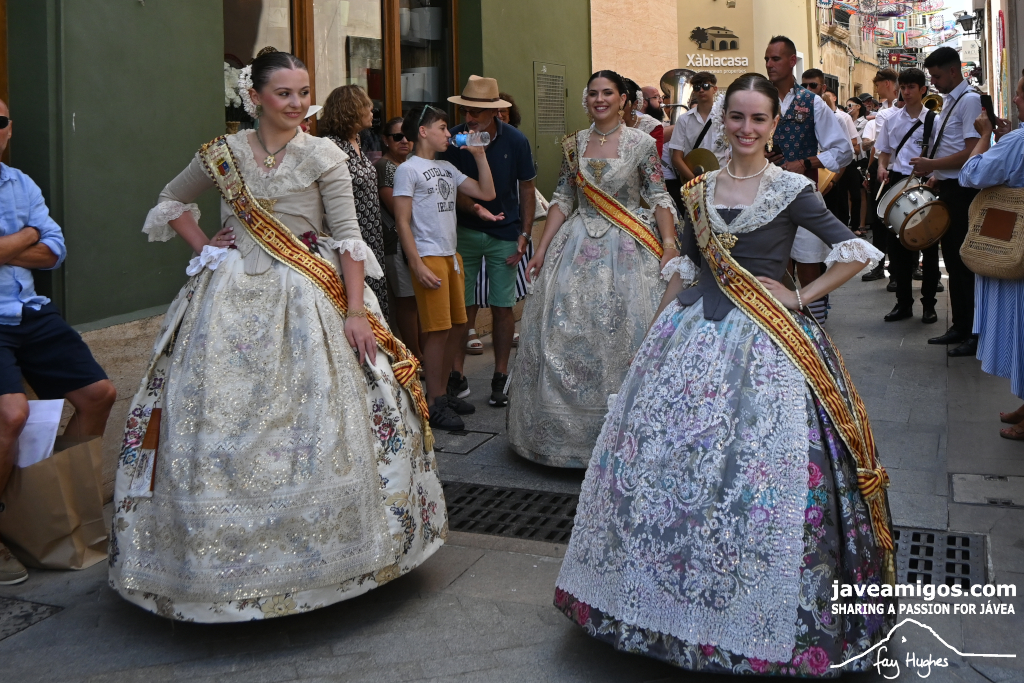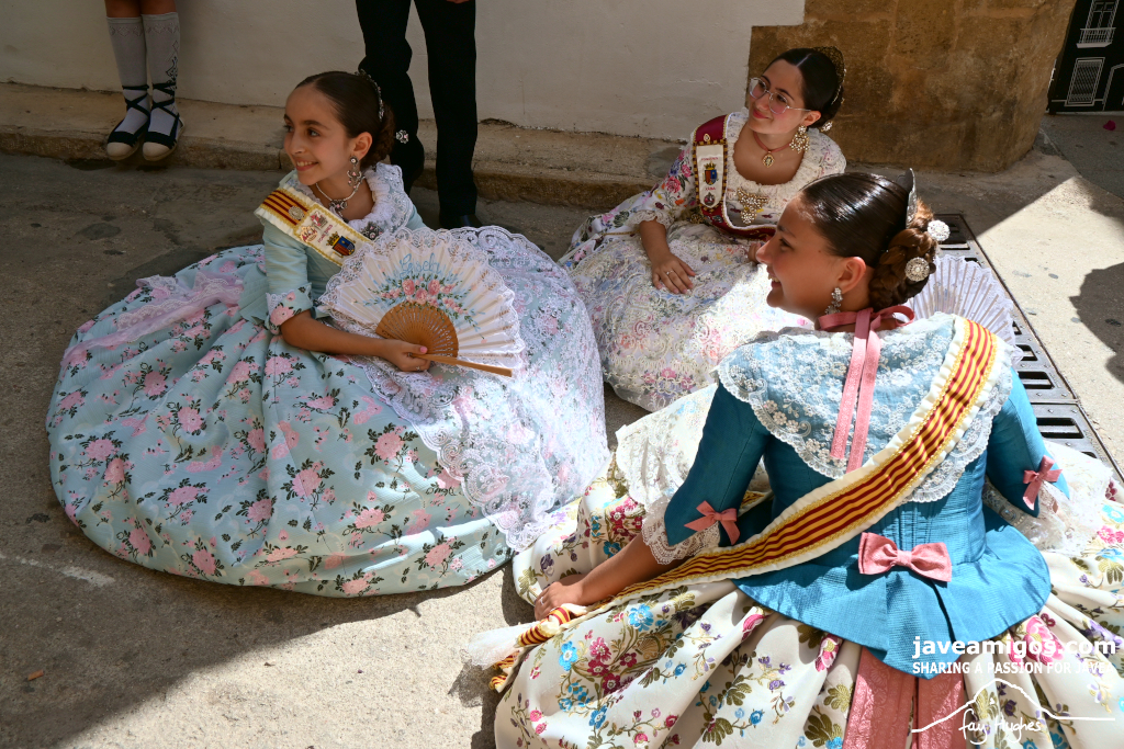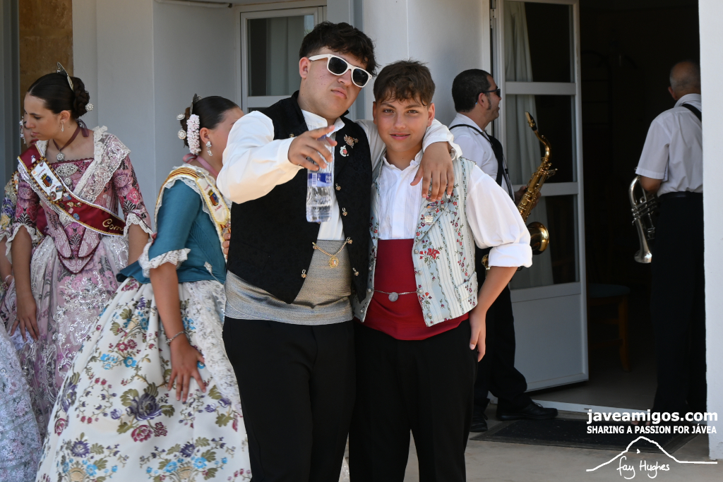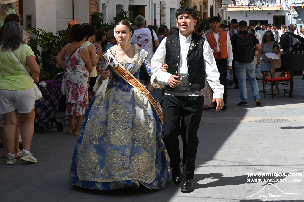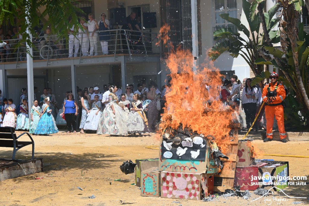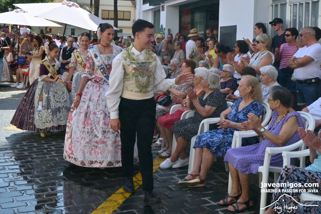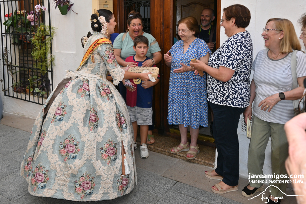 On a hot Thursday late morning, the members of Quintà 2025 ‘La Desmadrà’ and the young members of the Junior Court took part in the traditional parade to visit the decorated streets of the historic centre as well as joining the seniors of the Centro de Día Santa María de Betania in Placeta del Convent and the Asilo Hermanos Cholbi in Avenida del Port for their modest bonfires.