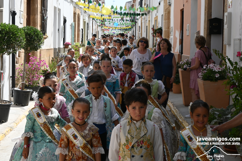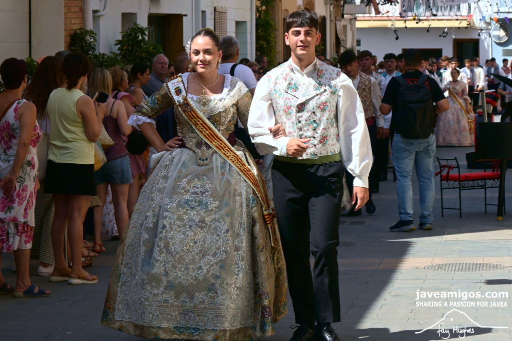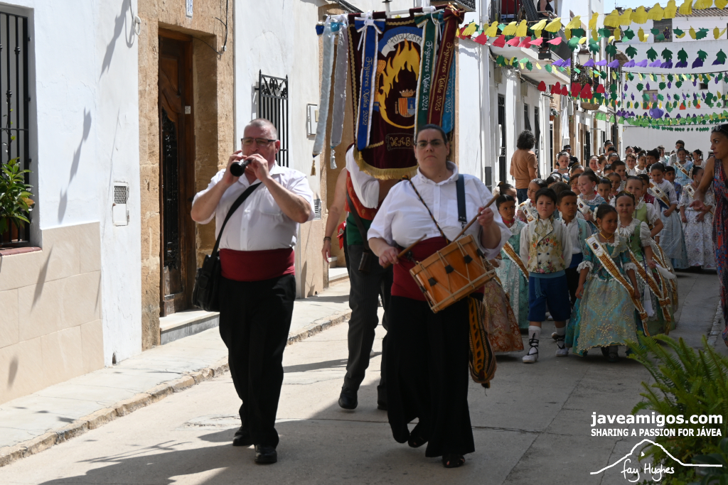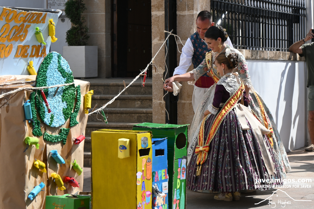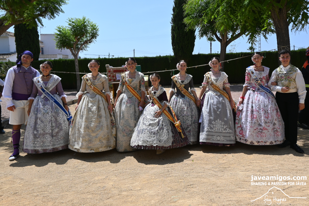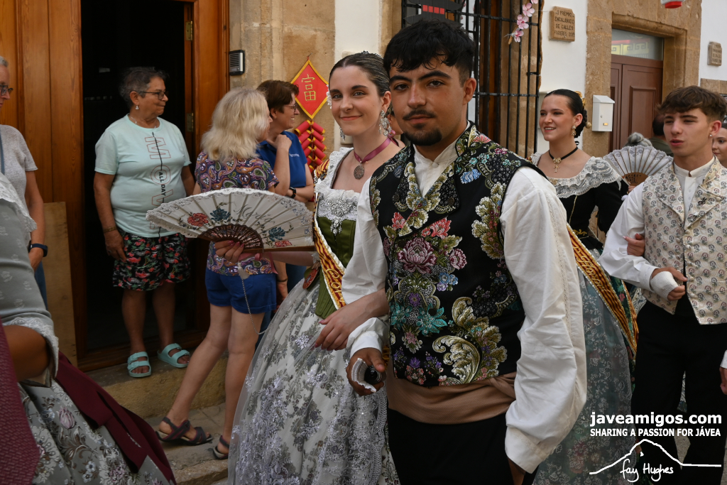 On a hot Thursday late morning, the members of Quintà 2025 ‘La Desmadrà’ and the young members of the Junior Court took part in the traditional parade to visit the decorated streets of the historic centre as well as joining the seniors of the Centro de Día Santa María de Betania in Placeta del Convent and the Asilo Hermanos Cholbi in Avenida del Port for their modest bonfires.