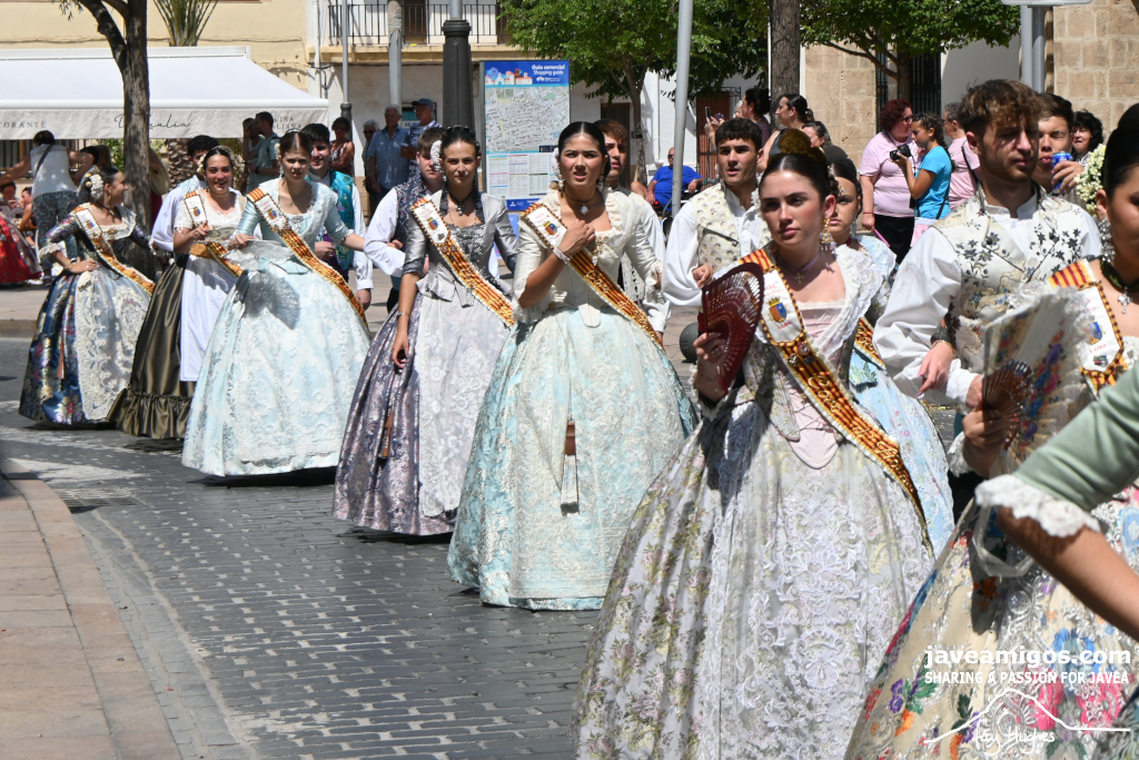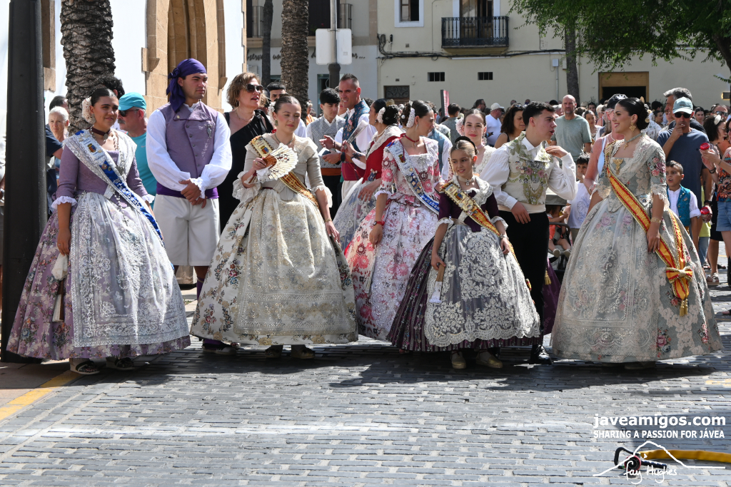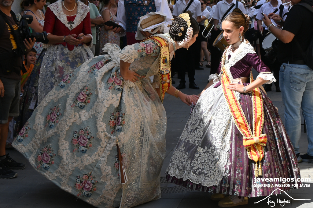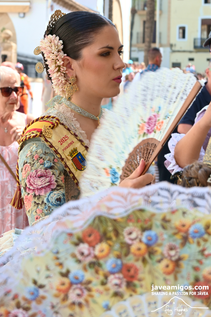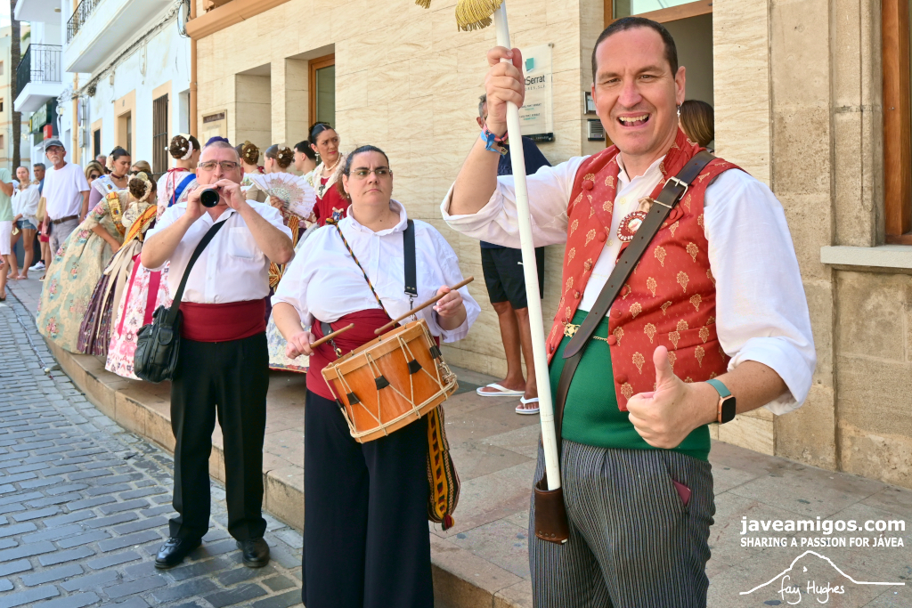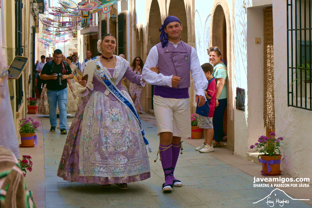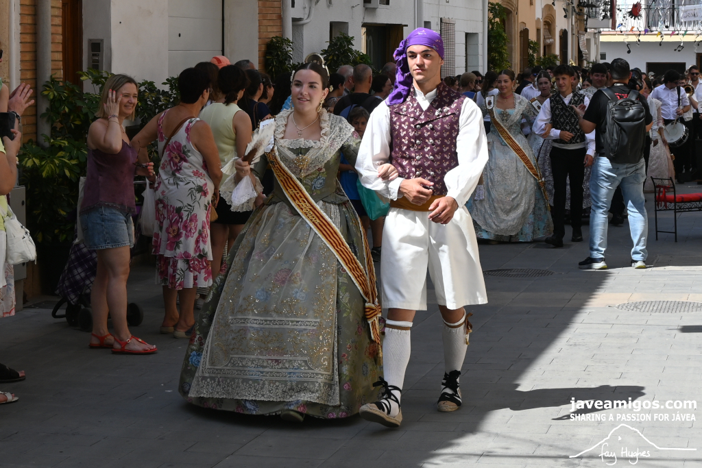 On a hot Thursday late morning, the members of Quintà 2025 ‘La Desmadrà’ and the young members of the Junior Court took part in the traditional parade to visit the decorated streets of the historic centre as well as joining the seniors of the Centro de Día Santa María de Betania in Placeta del Convent and the Asilo Hermanos Cholbi in Avenida del Port for their modest bonfires.