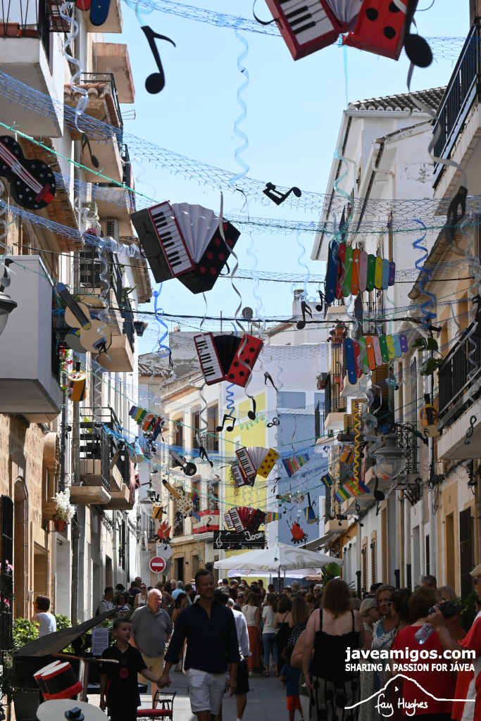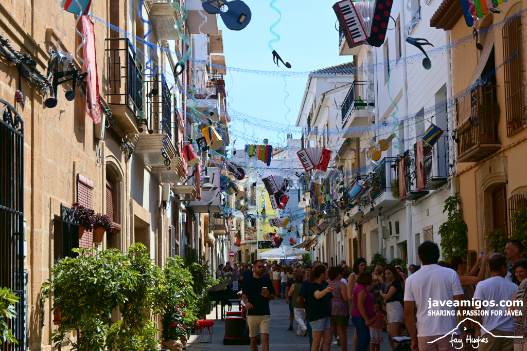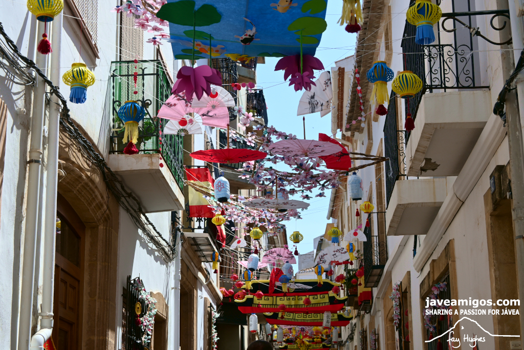 The neighbours of five streets mounted their decorations, fighting as always against the vandalism that sadly blights the wonderful attempt to fill the historic centre with colour: Calle Sant Pere Màrtir (China), Calle San José (coloured fans), Calle Virgen de la Merced (The Simpsons), Calle Jesús Nazareno (music), and Calle Tossal de Baix (macramé).