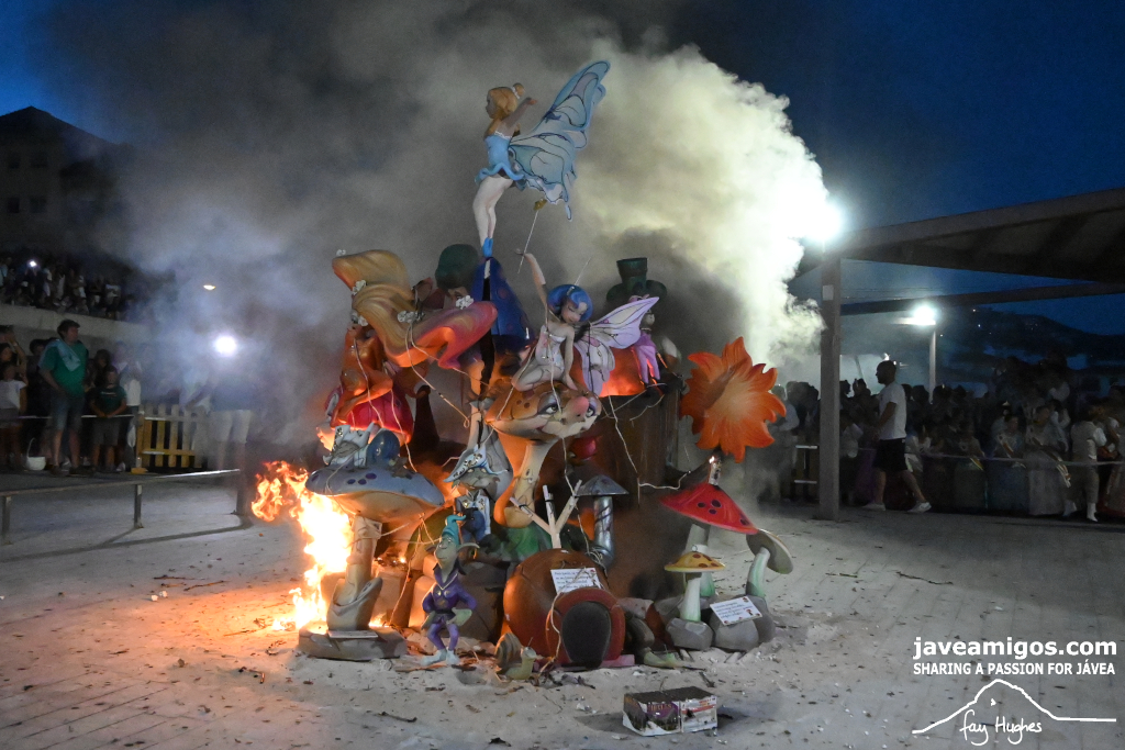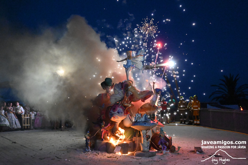 The young festeros took centre stage as the sun dripped below the horizon as their queen set alight the children’s effigy in Portal del Clot