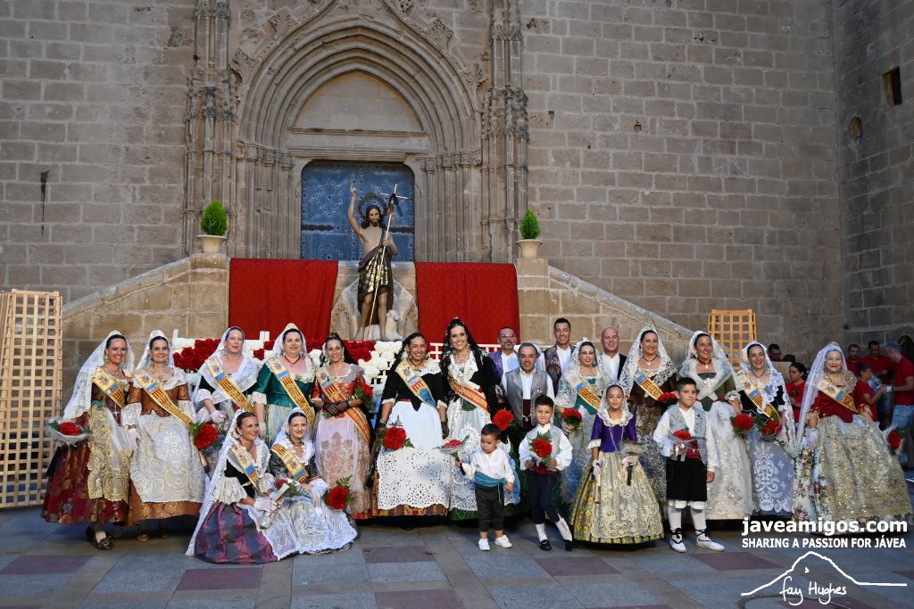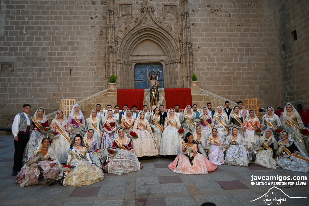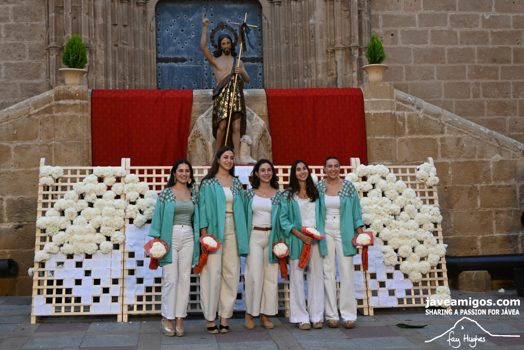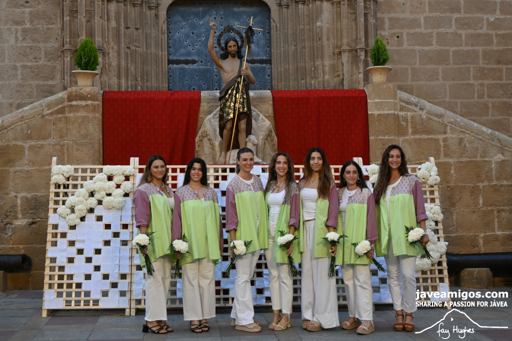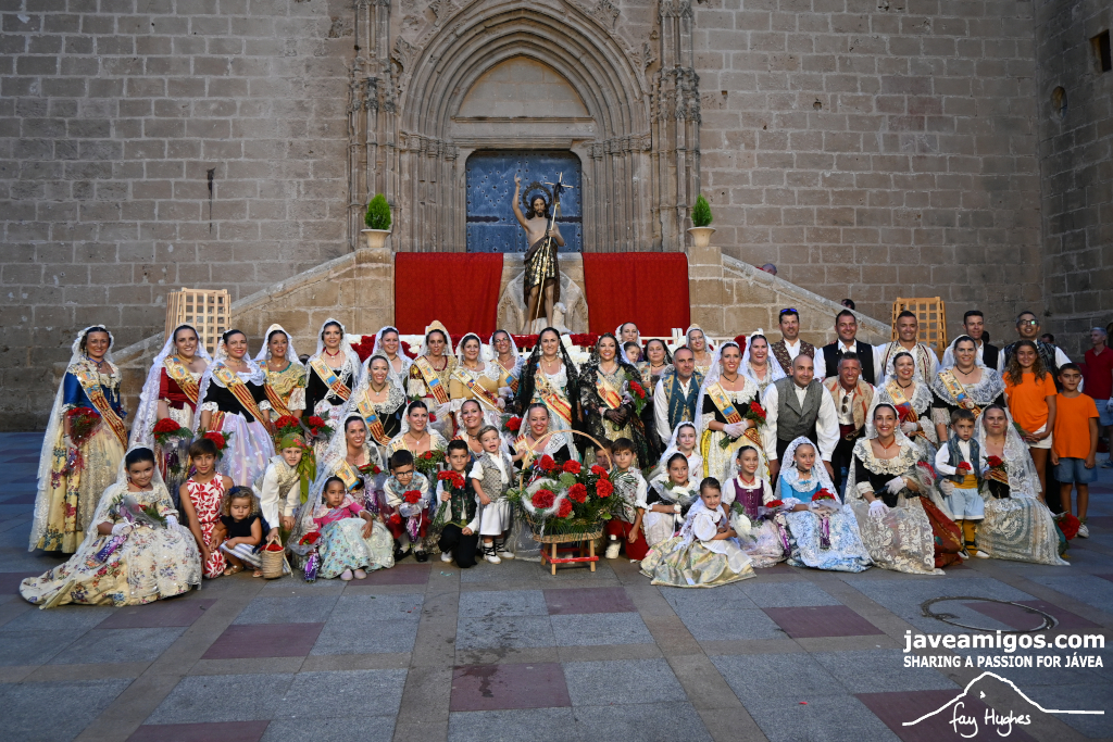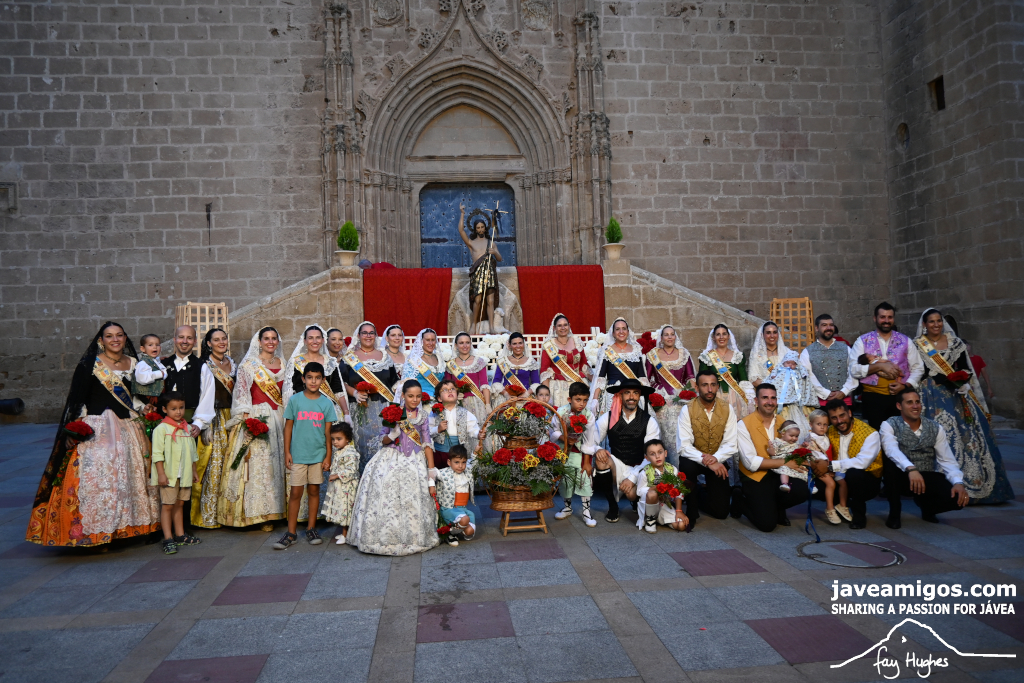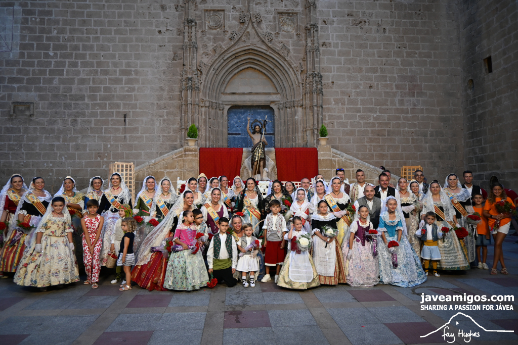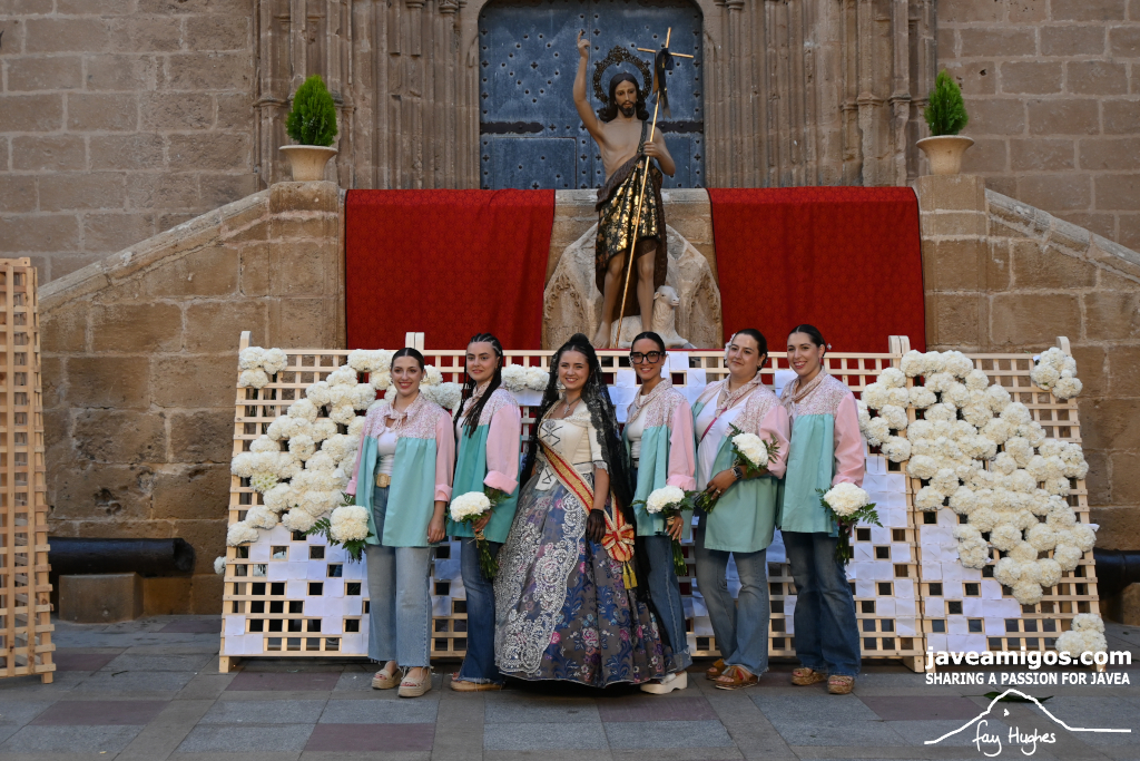 One of the most moving and traditional events of the Fogueres de Sant Joan de Xàbia is the flower offering to the saint. Hundreds of people participated in a parade that filled the streets of the historic centre with colour and joy, watched by thousands of residents and visitors.